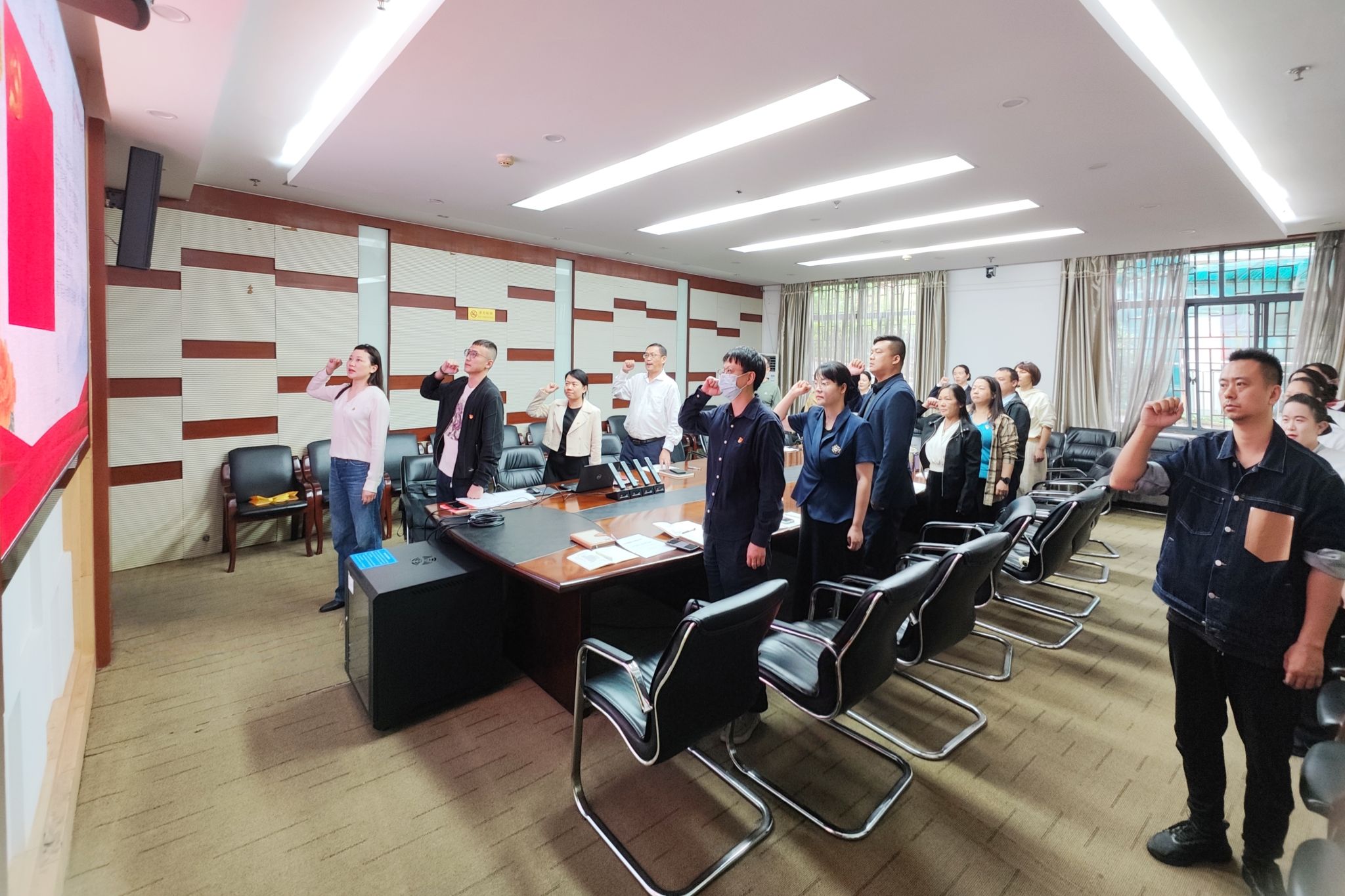 9月25日下午,接待服务中心党支部在迎宾楼3号会议室开展9月份“支部主题党日”活动,会议由党支部书记吴华玉同志主持,全体党员及入党积极分子参加了本次活动。按照支部主题党日规定动作要求,由后勤保障部副部长黄晶晶带领大家重温入党誓词,吴华玉同志带领大家学习《中国共产党章程》总纲部分的第三段内容。本