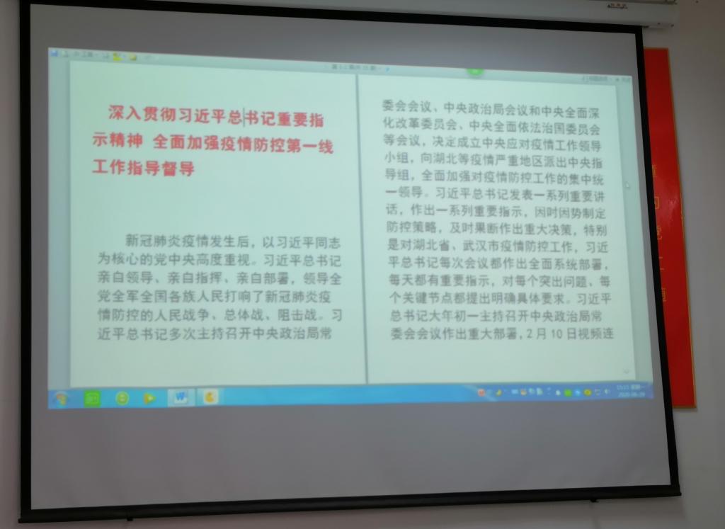 6月28日下午,学生住宿服务中心党支部通过腾讯会议,以PPT投屏的方式开展6月份“支部主题党日”活动,支部党员和入党积极分子共15人参加。活动由中心党支部书记郭文娟主持。在完成奏唱国歌、重温入党誓词、学习系列讲话的规定动作后,宣传委员邢丹带领大家学习湖北省委十一届七次全会精神。随后刘鸿新同志代表党