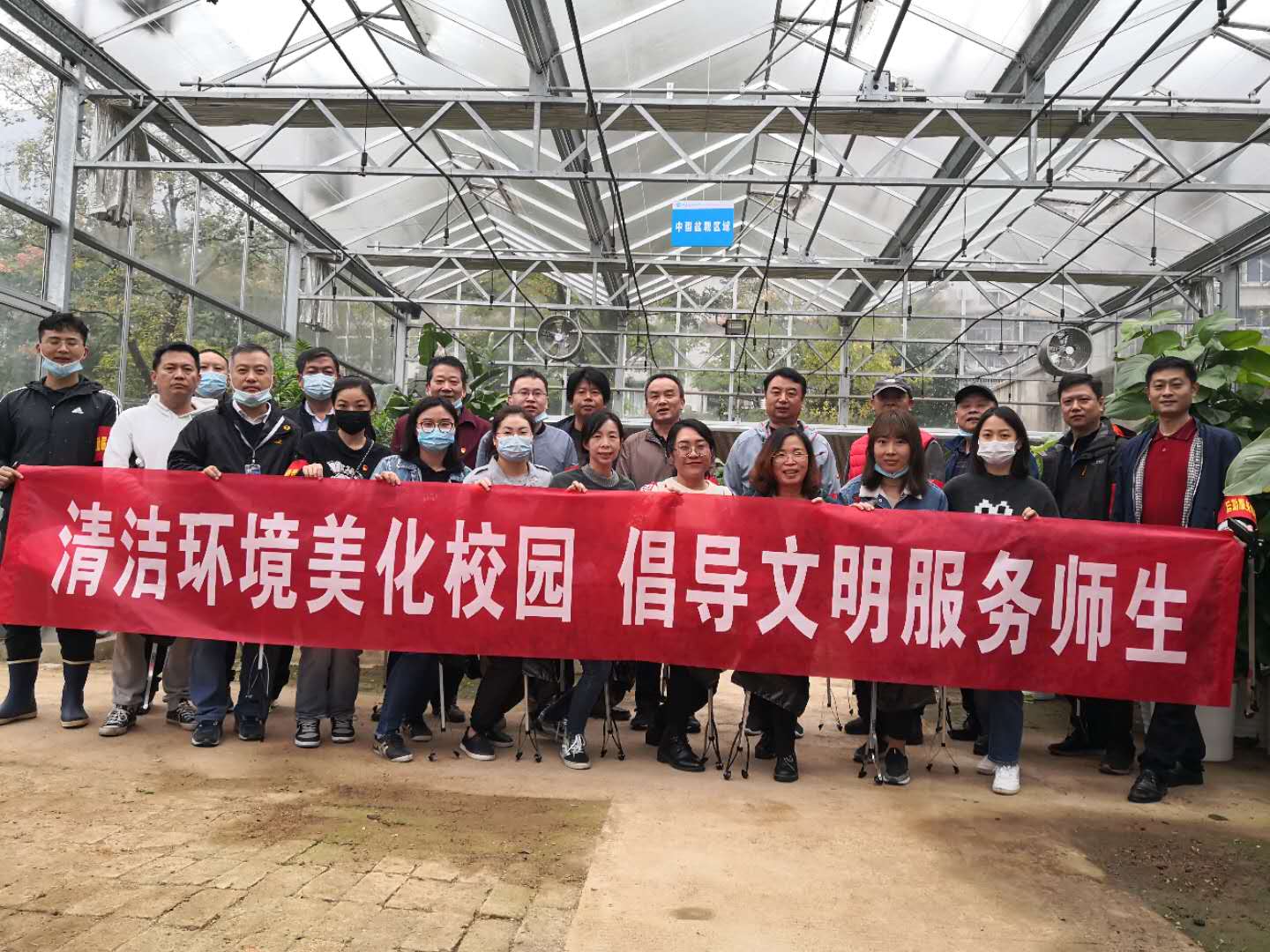 后勤保障处下沉党员进社区,开展“校园清扫、美化环境”活动