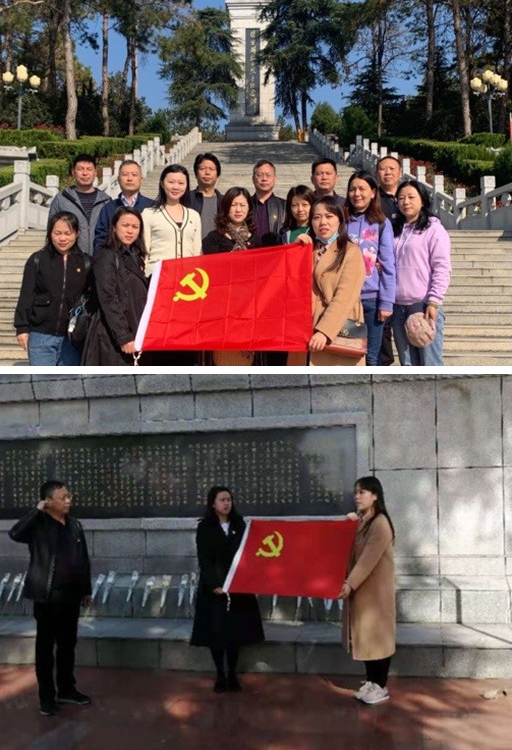 为庆祝中国共产党成立99周年,进一步学习贯彻党的十九大精神,增强党员意识,自觉锤炼党性,激励广大党员干部坚定理想信念,更好地发挥党员的先锋模范作用。11月15日上午,劳动服务中心党支部联合运输服务中心党支部前往安陆市赵家棚抗日烈士陵园,开展“重温红色历史,争做时代新人”为主题的党建活动,接受革命