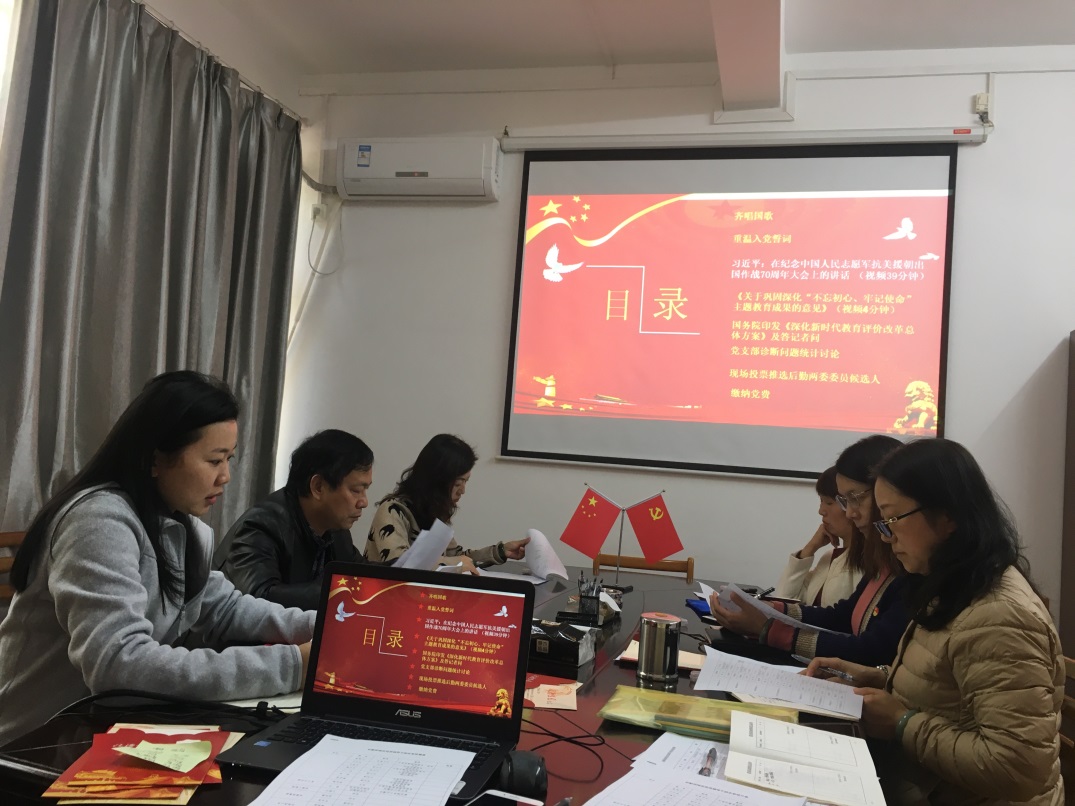 10月29日下午,劳动服务中心全体党员在中心会议室开展“10月份主题党日”活动,活动由支部书记黄晶晶主持。会议伊始,党支部成员齐唱国歌,随后,在支部书记黄晶晶带领下,全体同志重温入党誓词。会议第二部分,首先,通过观看视频学习“习近平总书记在纪念中国人民志愿军抗美援朝出国作战70周年大会上的讲话”及