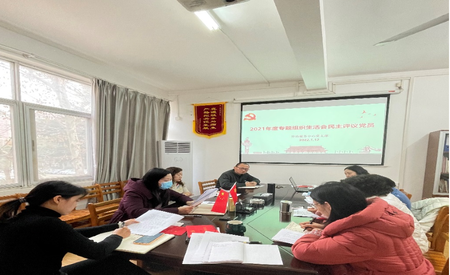 为进一步强化中心党支部凝聚力和创新力,根据《关于召开2021年度专题组织生活会和开展民主评议党员工作的通知》要求,劳动服中心党支部于1月12下午在中心会议室召开2021年12月份主题党日暨年度专题组织生活会并开展了民主评议党员工作。会议由支部书记黄晶晶主持。 首先,在完成奏唱国歌、重温入党誓词、缴纳12月
