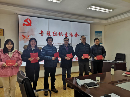 水电与节能管理中心党支部于2022年1月11日下午15时在水电中心二楼会议室开展2021年度专题组织生活会及民主评议。支部全体18名正式党员和1名预备党员参加会议。会议由党支部书记杨燚主持。首先,支部书记为12月入党的耿宏杰、刘清华、杨燚、康涛、张逗逗、和左晓宇同志送上政治生日纪念卡。会议第一个议程,杨燚书