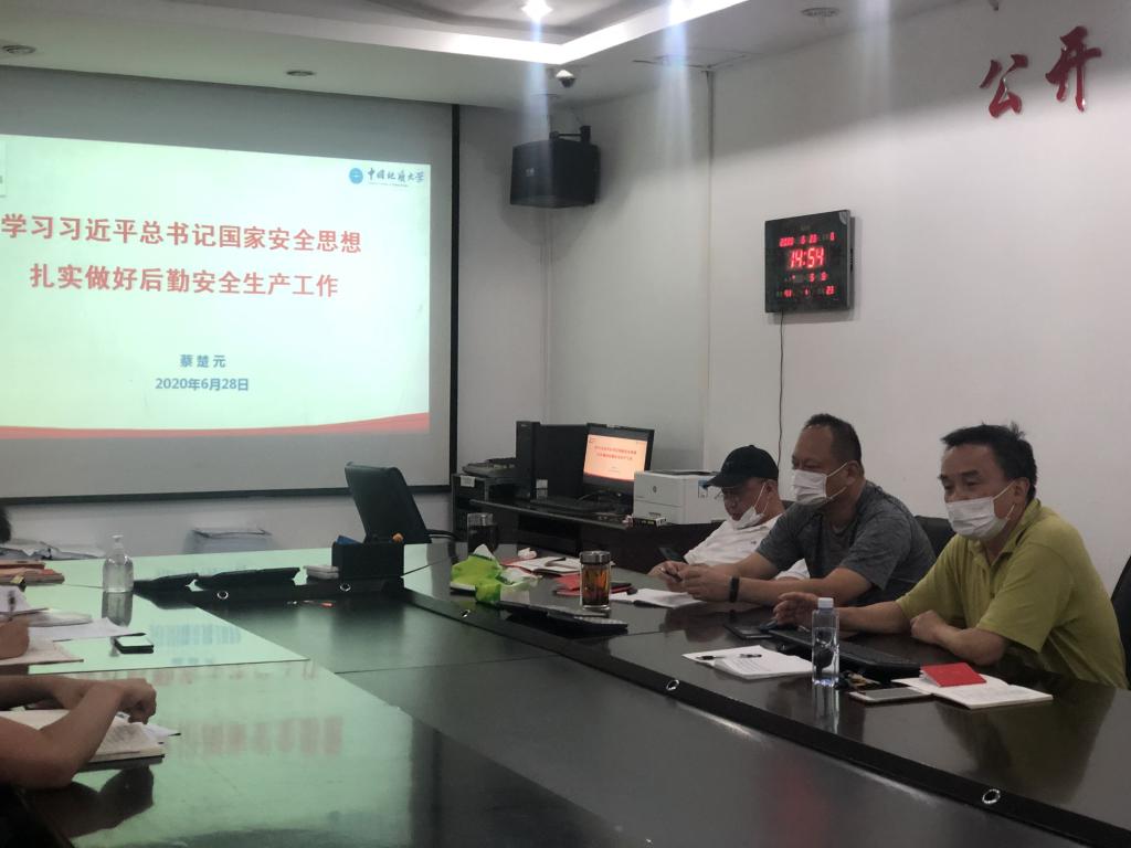 后勤党委书记蔡楚元同志带领大家学习了《学习习近平总书记国家安全思想,扎实做好后勤安全生产工作》,习近平总书记在重要会议上、视察考察过程中和针对重大事故上均对于国家总体安全观和安全生产作了一系列重要讲话和指示,结合我处目前实际工作,蔡楚元同志强调,要深入、广泛开展安全生产的理论、政策学习、培训、宣传,要认真履行职责,协同配合,要认真落实学校部署要求,做好常态化疫情防控工作,要层层压实责任,落实各项安全生产管理制度、规定,要做好防大汛的各项准备工作,要做好干部员工的思想政治工作,增强全体员工的安全生产意识,营造后勤保障处安全生产的氛围环境。