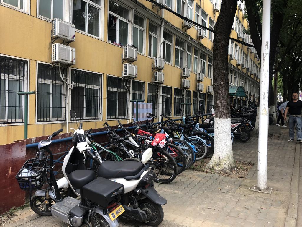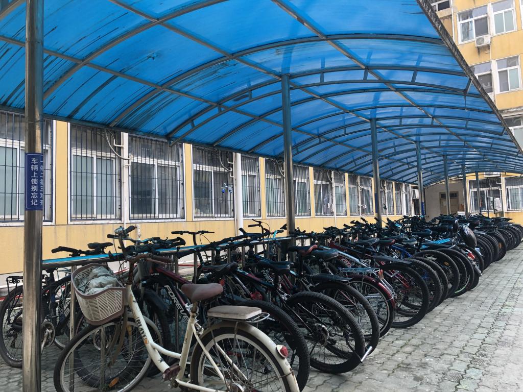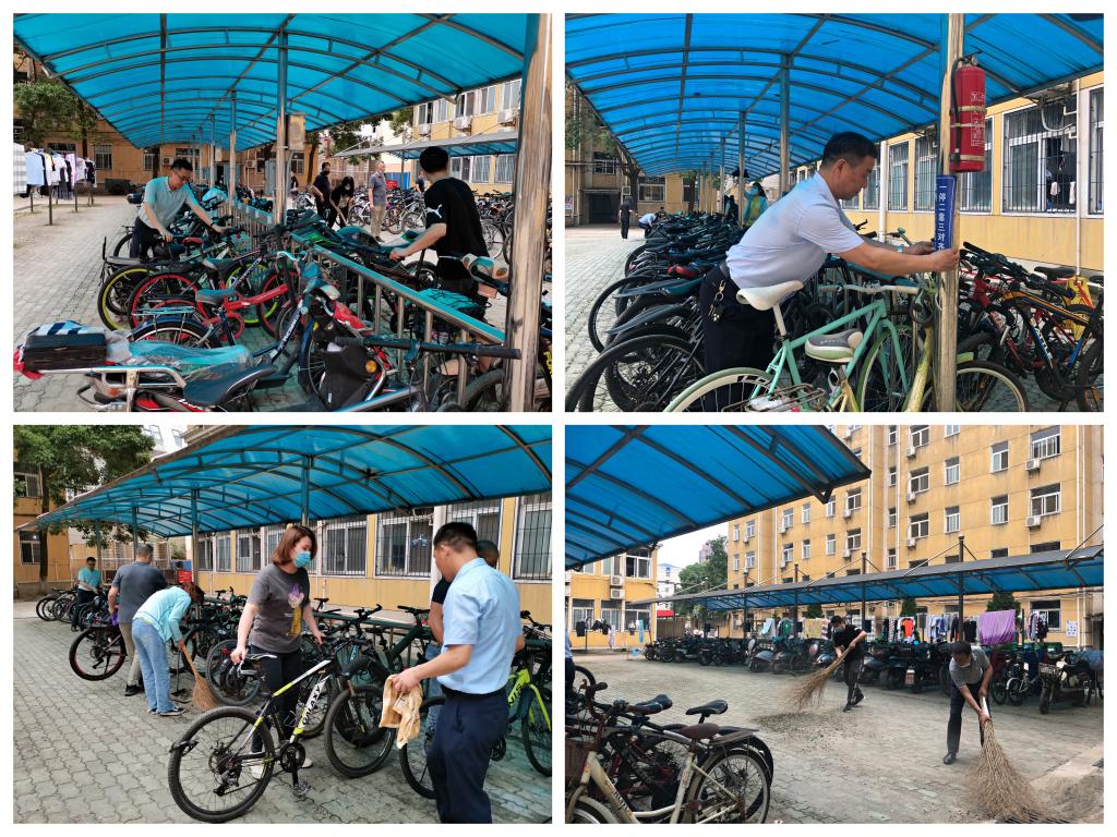 60、62栋宿舍院内公共自行车棚内有废旧闲置电动车、自行车占用公共资源。为了有效改善自行车棚停车环境,消除消防安全隐患,全体参与人员对自行车棚进行彻底的清扫整理。在清理过程中,大家热情饱满、干劲十足,不顾炎热的天气,全面清扫车棚内的纸屑、树叶等垃圾,认真擦拭棚内立柱和栏杆,把无人认领停放很久的自行车推出车棚,清理堆放的杂物。清理完成后,将“车辆上锁别忘记 一停二靠三对齐”标识张贴在棚内立柱上,引导学生文明有序停放电动车、自行车,共同营造优美的居住环境。整个清扫活动分工明确、秩序井然。历时一小时,车棚内地面垃圾全部清除,各类车辆摆放整齐,环境卫生面貌焕然一新。