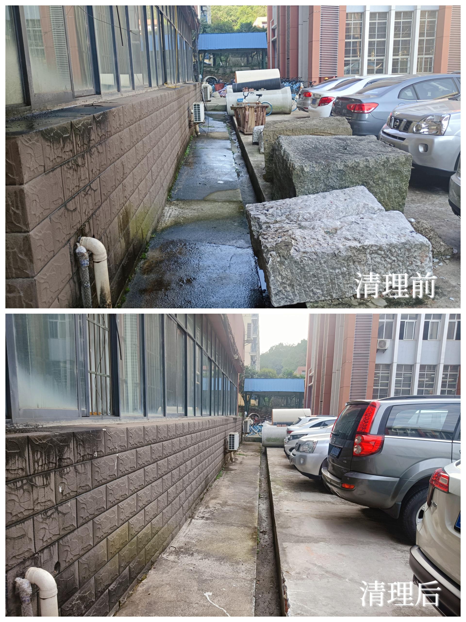 西区教二楼及工程实验楼周边常年堆积的固体废弃物及各类矿土实验垃圾成为困扰师生的一块“心病”,既造成了空间浪费,又影响了校园环境。为切实解决这一问题,物业服务中心积极采取措施,主动解决问题,用实际行推进党史学习教育走深走实。