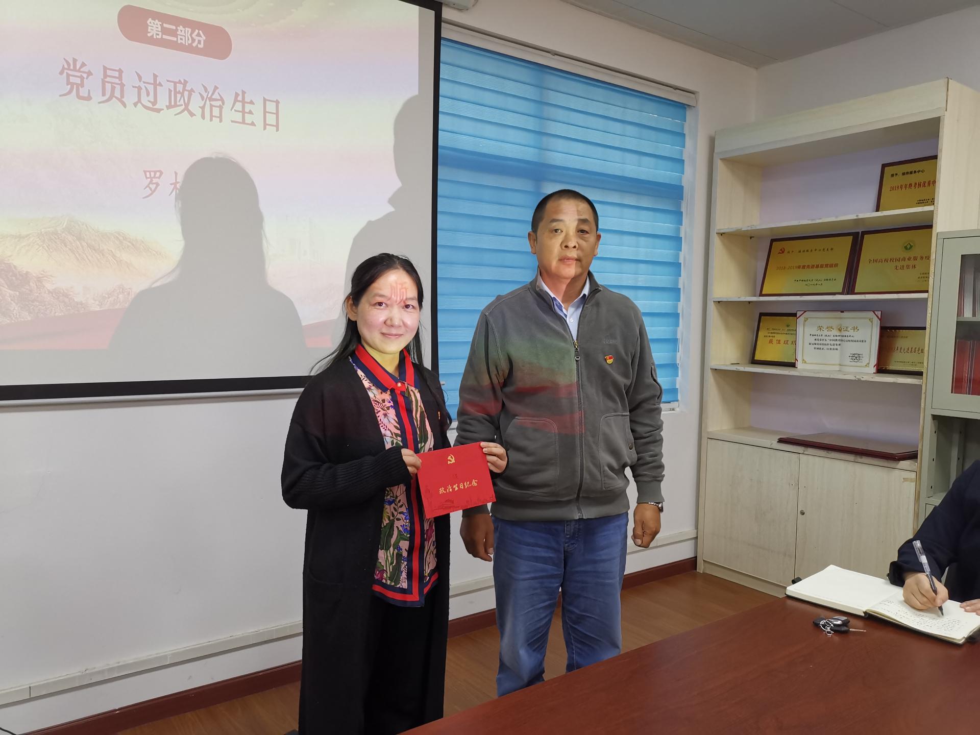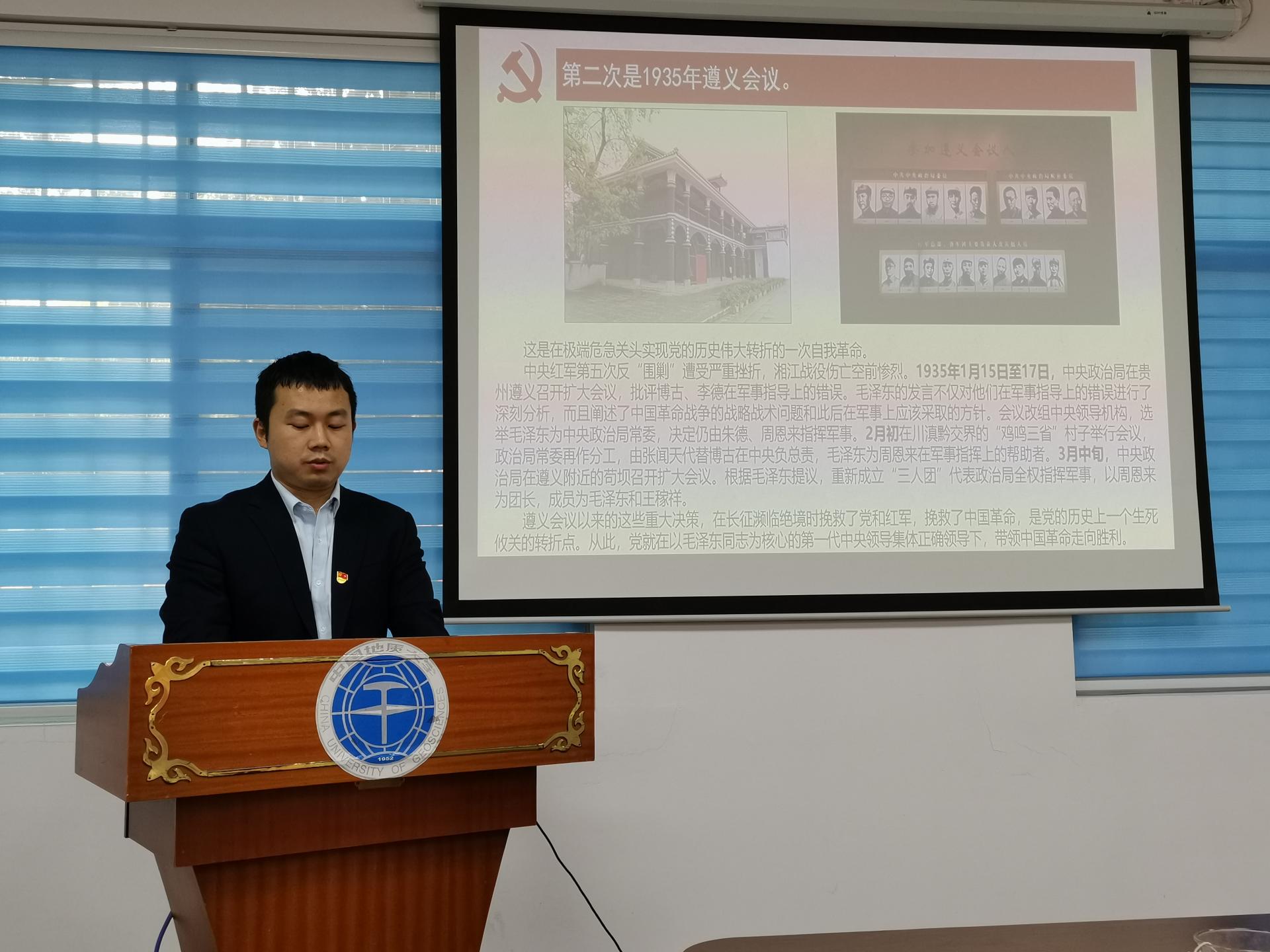会议伊始,支部播放了《学习贯彻习近平总书记在纪念辛亥革命110周年大会上的重要讲话》的视频,在完成唱国歌、重温入党誓词以及学习党章等规定动作后,支部书记殷学军给本月过政治生日的罗桂顺呈上了生日贺卡,送上组织的祝福。接着,杨钦祎同志以《学习百年党史 汲取奋进力量》为题给大家上微党课,曾彬的微党课《伟大抗战精神》,带领大家重温了抗战时期。