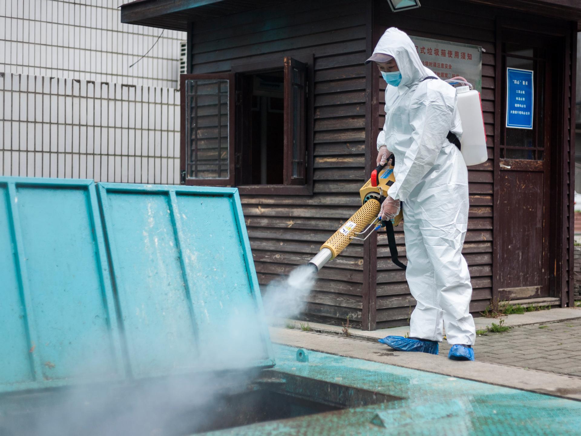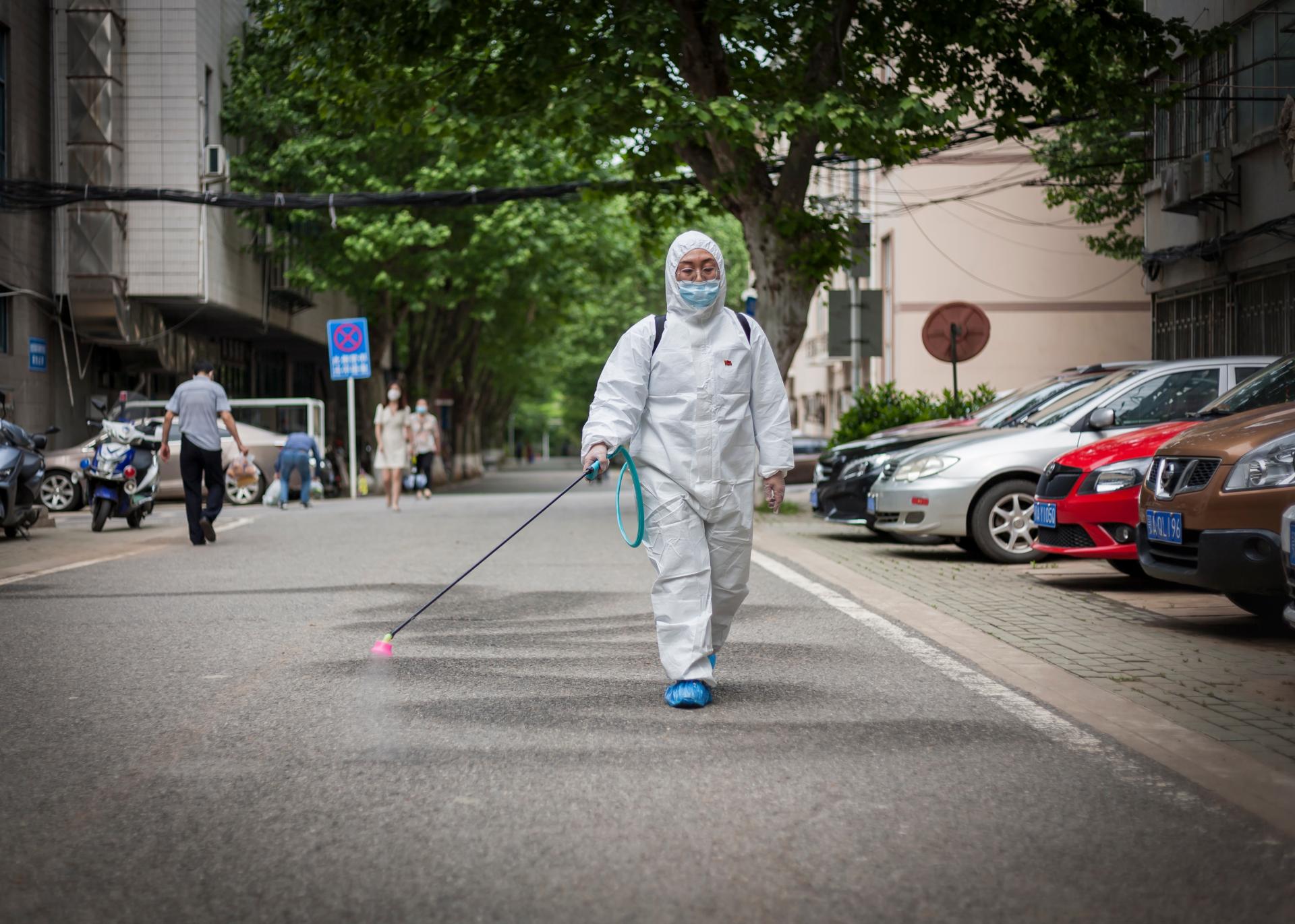 当地表温度已冲破30℃,大家都穿上清凉的夏装,他们却穿上厚厚的防护服,背起重达50斤的喷雾器与水雾烟雾机行走在校园各处,防护服里的衣服干了又湿,湿了又干。