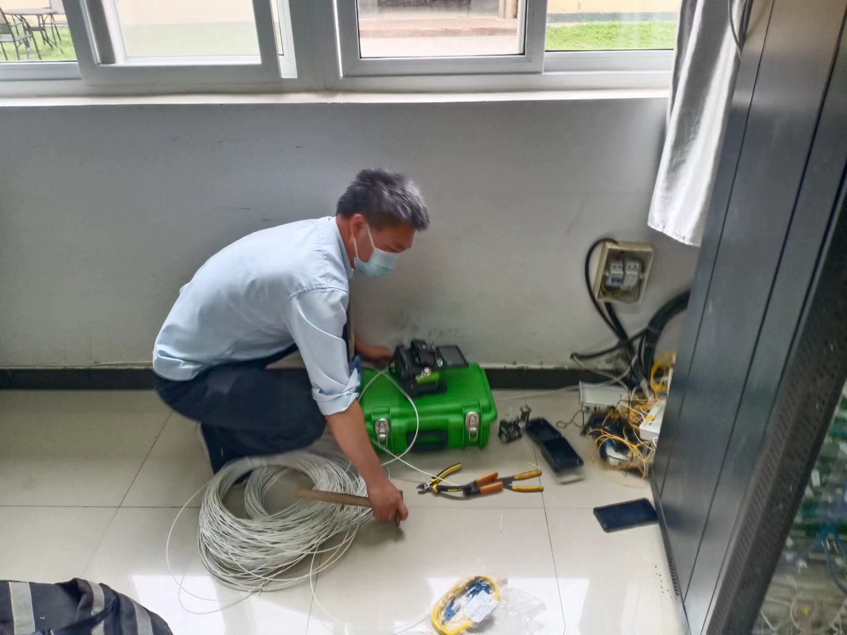 张小卫在学海楼安装5部疫情防控专用电话 吴芳摄