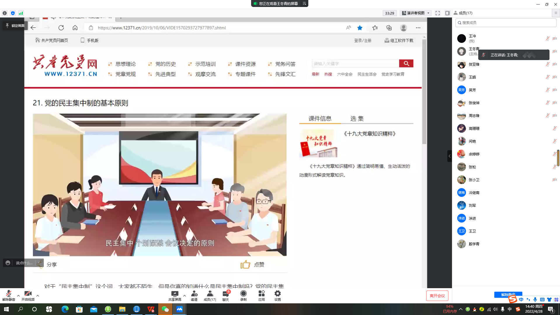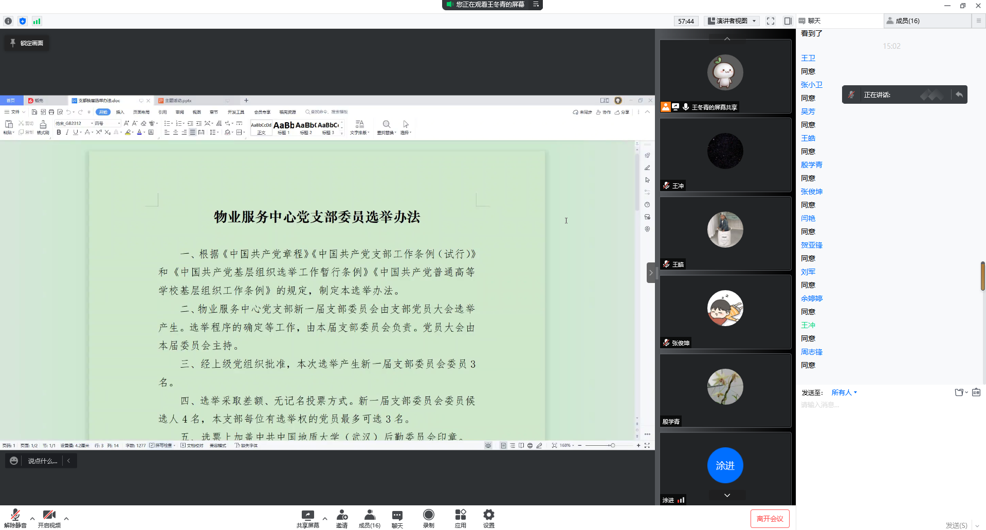4月28日下午,物业服务中心党支部通过腾讯会议线上开展4月份“支部主题党日”活动,支部党员、预备党员共计18人参加,会议由组织委员兼纪检委员王冬青同志主持。