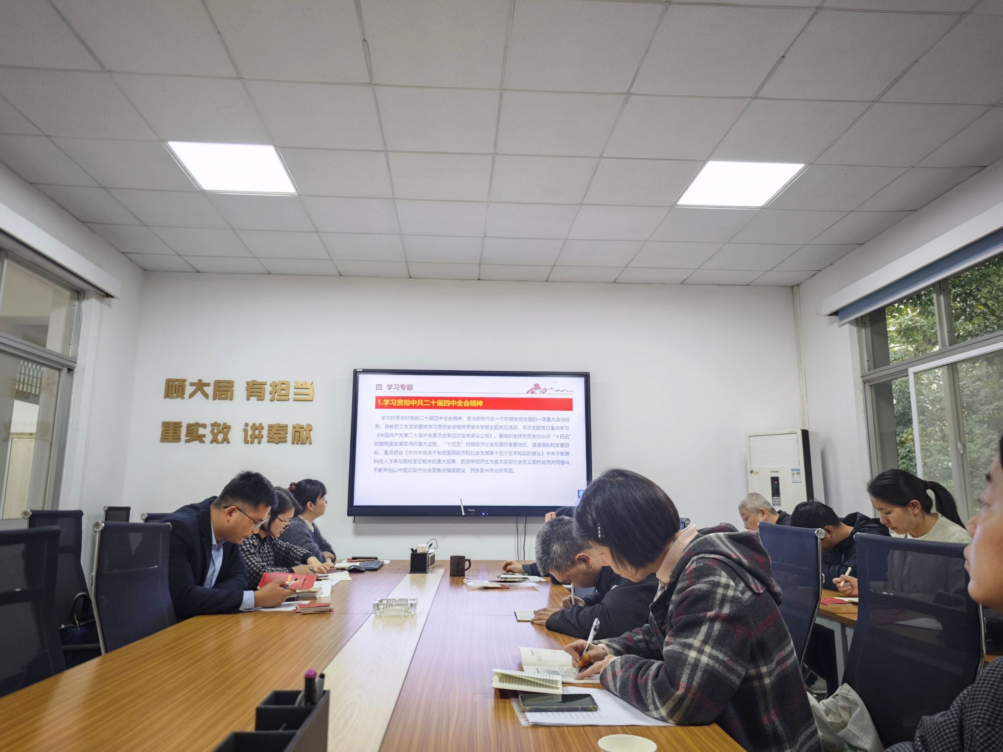 在完成奏唱国歌、重温入党誓词等规定动作后,支部宣传委员兼纪检委员王冲同志带领大家重点学习了党的二十届四中全会精神和《习近平谈治国理政》第五卷部分内容。党的二十届四中全会围绕推进国家治理体系和治理能力现代化作出一系列重大部署,为新征程上做好各项工作提供了根本遵循。号召全体党员要深刻领会全会提出的新思想新论断新要求,全面把握《中共中央关于制定国民经济和社会发展第十五个五年规划的建议》的战略意义和任务举措,切实把学习成果转化为推动后勤工作高质量发展的实际成效。