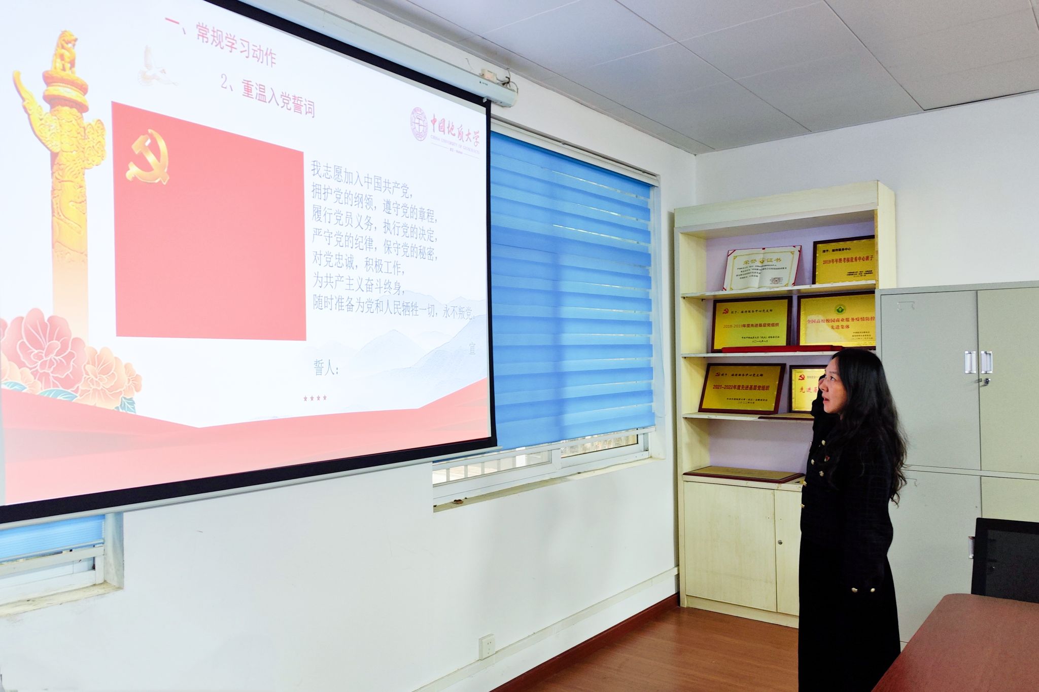 接待服务中心党支部将持续学习贯彻党的二十届四中全会精神,积极参与“十四五”事业发展的成绩和经验总结,为我校统筹推进教育科技人才一体建设,扎实推进教育强国建设地大实践,加快形成世界重要的地学教育中心、人才中心和创新高地做出后勤保障贡献。