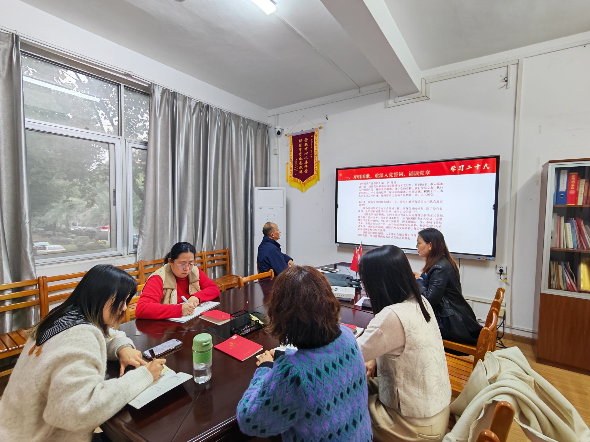 活动严格落实组织生活要求,依次完成奏唱国歌、重温入党誓词、集体诵读党章等规定议程,强化党员身份认同与责任担当。会上,组织委员林利红领学《中国共产党第二十届中央委员会第四次全体会议公报》。全体党员充分认识“十四五”时期我国发展取得的重大成就,以及“十五五”时期经济社会发展的重要地位、遵循原则和主要目标,党员们重点领会《中共中央关于制定国民经济和社会发展第十五个五年规划的建议》中关于教育科技人才等与高校密切相关的重大部署,明确教育工作者使命。吴云领学《习近平谈治国理政》第五卷,带领党员专题学习习近平总书记重要文章,深化党员对中华民族共同体意识的认识。胡靓解读《中国共产党思想政治工作条例》,强调创新工作方法、凝聚思想共识的重要性。