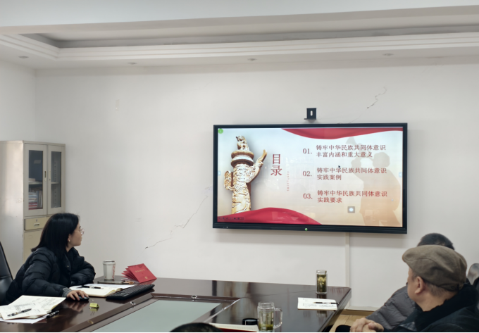 随后,支部书记吕璐同志以《铸牢中华民族共同体意识》为题,为全体党员带来一堂深刻生动的微党课。她系统阐释了这一理念的理论渊源——党的十八大以来,以习近平同志为核心的党中央坚持“两个结合”、着眼“两个大局”提出的重大原创性论断;强调其作为民族团结之本、国家认同的情感纽带、祖国统一的思想基石、中华民族永续发展的力量源泉的重大意义。党课中特别引用新疆伽师地震救援案例:2020年地震中,汉族、维吾尔族、哈萨克族等多民族救援队伍冲锋在前,各族群众自发互助,灾后携手重建家园,生动诠释了“各民族像石榴籽一样紧紧抱在一起”的团结精神。她激励全体党员深刻把握铸牢中华民族共同体意识的核心要义与重要价值,以实干担当为强国建设、民族复兴汇聚奋进合力。
