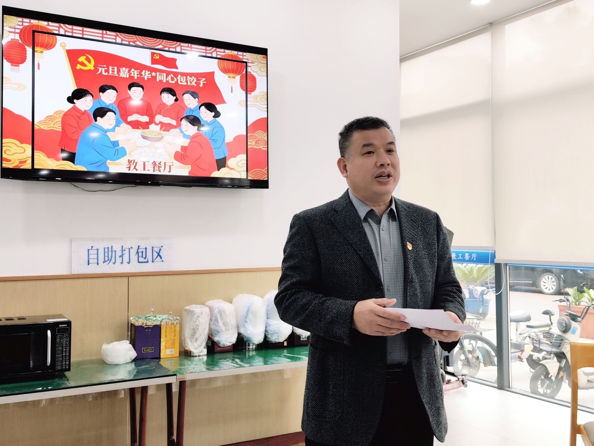 活动伊始,科学技术发展院党支部书记段平忠送上新年寄语。他表示,饺子,这一传统美食,承载着团圆美满的深情,寄托着万象更新的期许。此次联合活动不仅是支部间深化交流、协同共建的重要平台,更是以传统文化为纽带,凝聚人心、锤炼团队、激发活力的生动实践。值此辞旧迎新之际,他期待各党支部以本次活动为新的起点,持续推动联学共建走深走实,促进党建工作与业务发展、学业进步同频共振、互促共进,希望师生们在动手协作中增进友谊,在欢声笑语中感受温暖,以更加饱满昂扬的姿态迎接新一年的机遇与挑战。