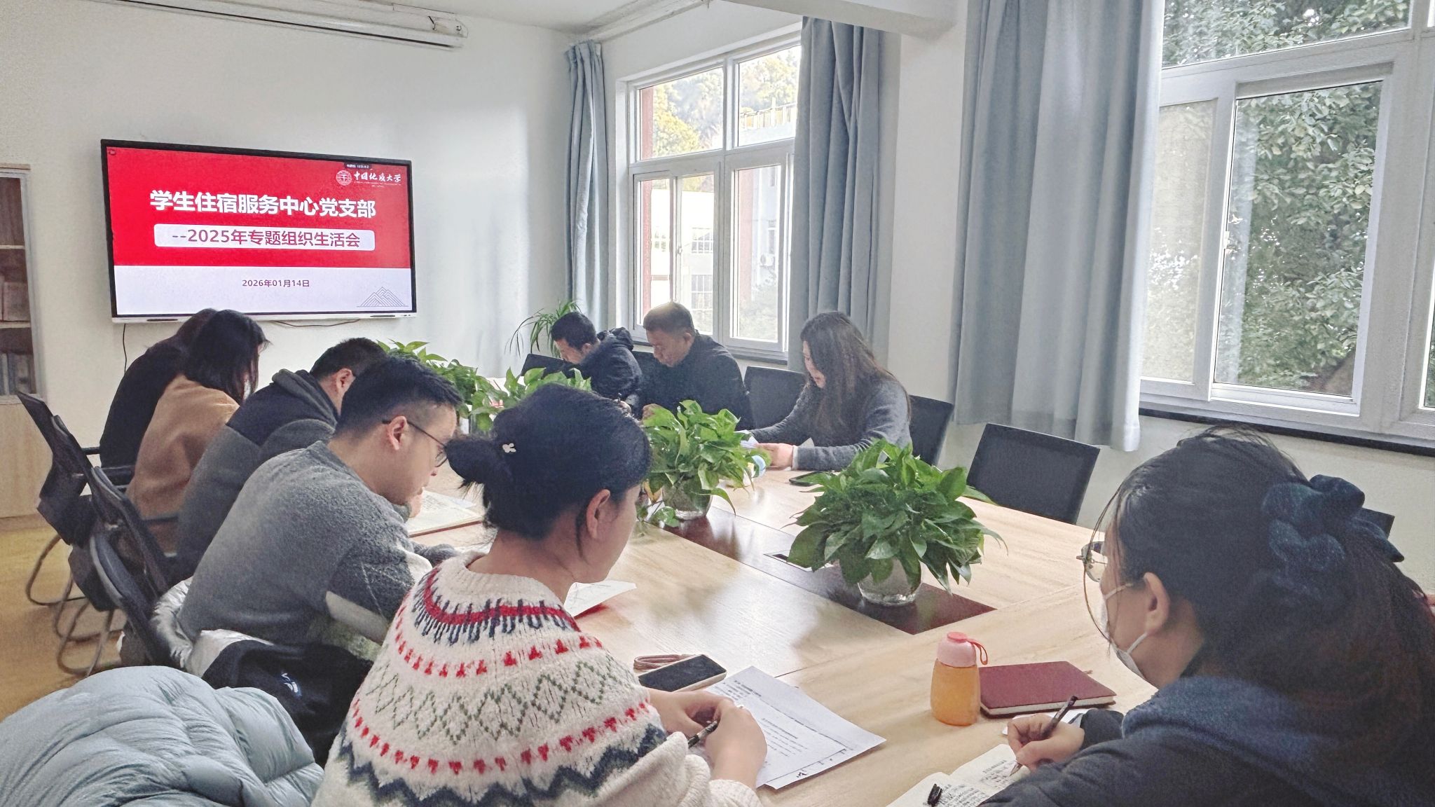 1月14日上午,学生住宿服务中心党支部在中心二楼会议室召开支部党员大会暨2025年度专题组织生活会。党支部全体正式党员10人参加会议。会议由党支部书记郭文娟主持。