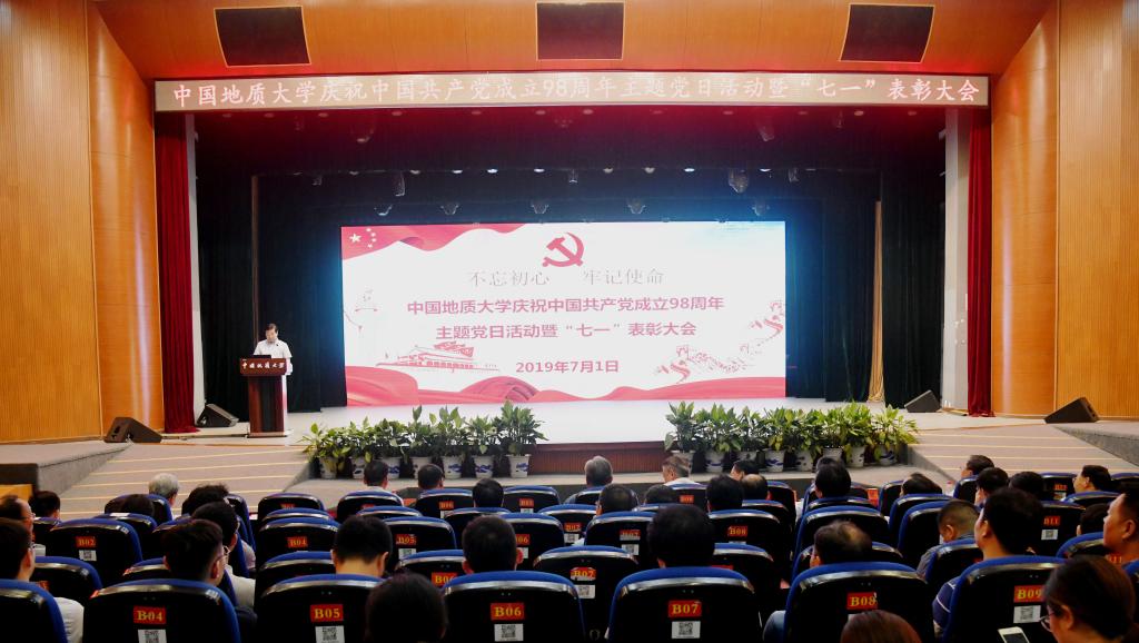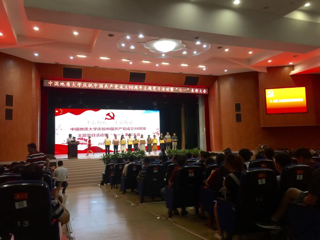 7月1日下午,在中国共产党成立98周年之际,学校在弘毅堂隆重举行“庆祝中国共产党成立98周年主题党日活动暨七一表彰大会”。在校校领导,处级党员干部,全体党支部书记,获表彰单位代表和个人参加了会议。