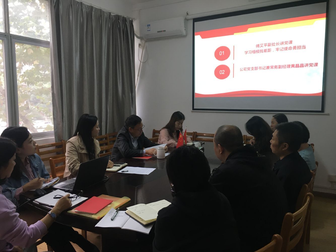 为深入开展“不忘初心、牢记使命”主题教育活动, 10月22日上午,在劳动服务公司会议室,后勤保障处分管副处长兼公司经理傅艾平、党支部书记兼公司常务副经理黄晶晶,分别以“学习楷模找差距,牢记使命勇担当”、“深化后勤体制改革,提升保障服务质量”为题讲党课。公司党员、入党积极分子及全体在职职工参加了党课学习。