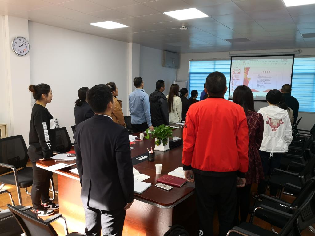 首先,全体党员起立集体齐唱国歌,重温入党誓词以及诵读党章总纲,完成了主题党日的规定动作。接着,全体党员集中学习了中央“不忘初心、牢记使命”主题教育小组印发《关于在“不忘初心、牢记使命”主题教育中加强爱国主义教育、弘扬爱国主义精神的通知》。