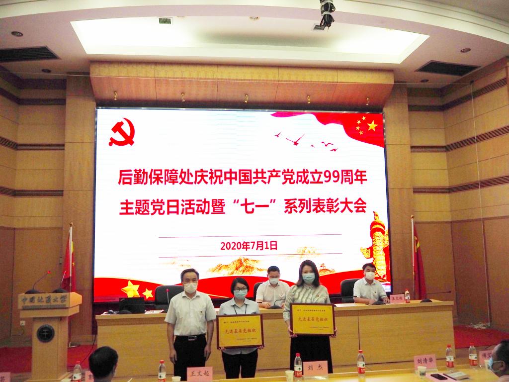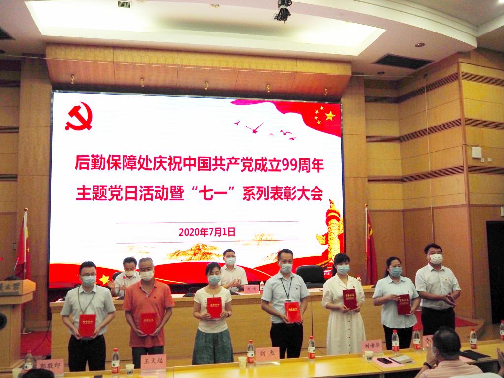 2020年7月1日下午,后勤保障处庆祝中国共产党成立99周年暨“七一”表彰大会在迎宾楼报告厅举行。副校长刘杰,后勤保障处处党政班子成员,处级干部,全体中心班子成员、处机关党员、党支部委员、受表彰个人、管培生参加会议。后勤党委书记蔡楚元主持会议。