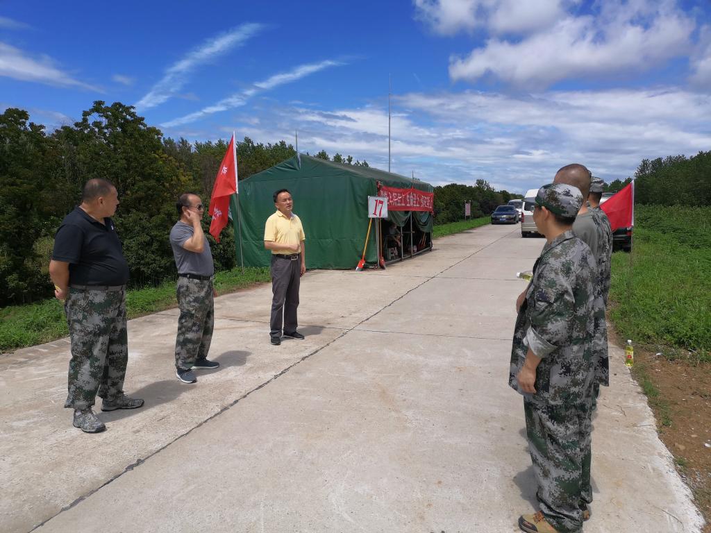 下午2:00,后勤保障处抗洪抢险突击队员达到白沙洲抗洪队员驻扎营地,简单休整之后,在关山街武装部带领下,到我校负责的堤段熟悉环境。关山街武装部部长张永明简要介绍了巡堤时间安排、工作任务和注意事项,要求大家务必提高意识,认真执行巡堤工作。