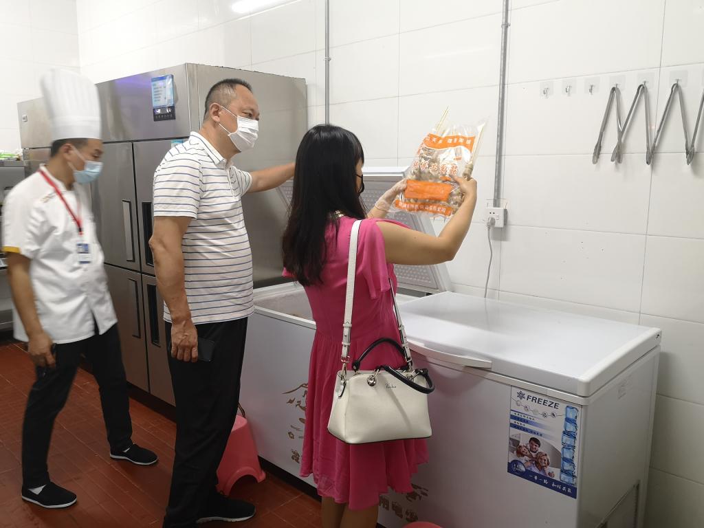 检查小组由我处副处长刘清华、王伟带队,分别对未来城校区学一食堂、学二食堂和教工食堂的就餐大厅疫情防控措施、从业人员健康证办理、食品原料采购保质期和贮存规范、食堂后厨食品加工操作规范、餐饮具清洗消毒保洁操作规范、食堂等方面进行全面详细的咨询和查看,对现场发现的地面积水、食品加工操作不规范等问题现场要求整改。