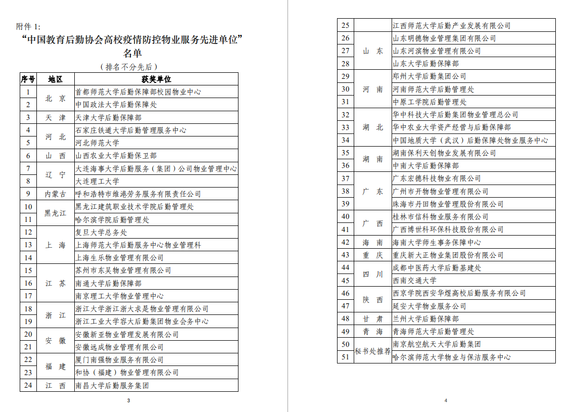 12月28日,中国教育后勤协会物业管理专业委员会发布《关于表彰“中国教育后勤协会高校疫情防控物业服务先进单位、先进个人”的决定》。物业服务中心荣获“高校疫情防控物业服务先进单位”奖项。
