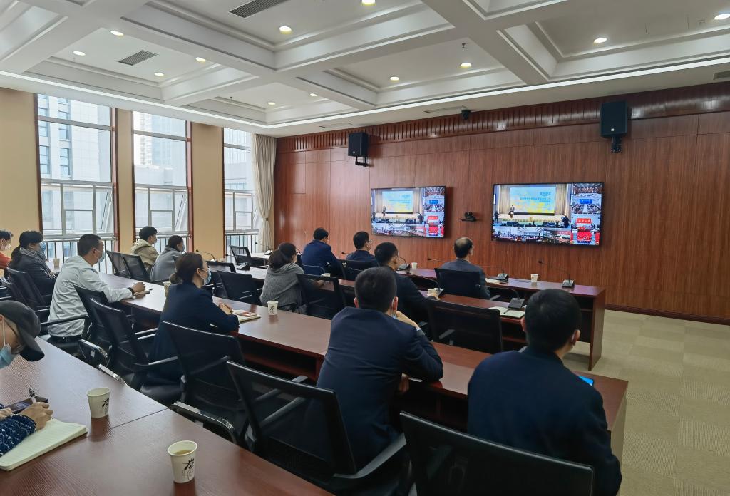 我校副校长刘杰,后勤保障处处长王文起及其他相关职能部门负责人在教学综合楼A703参加了视频会议。后勤保障处饮食服务中心班子成员及各食堂负责人也一同参加了此次会议。