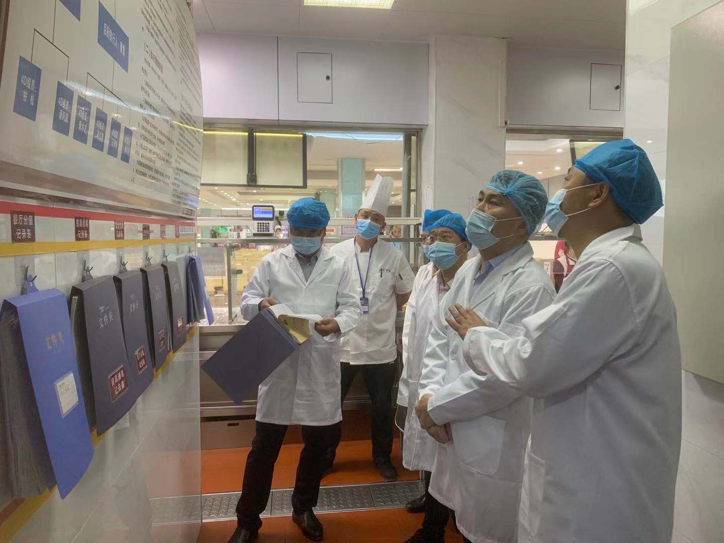 随后武文秀一行现场查看了东苑食堂的餐饮服务和安全卫生等工作。饮食服务中心主任王建胜现场介绍了东苑食堂的供餐特点、产品设置、档口引进以及从业人员管理等工作。