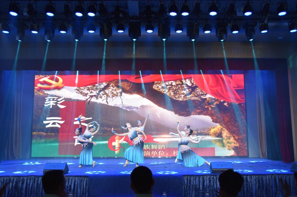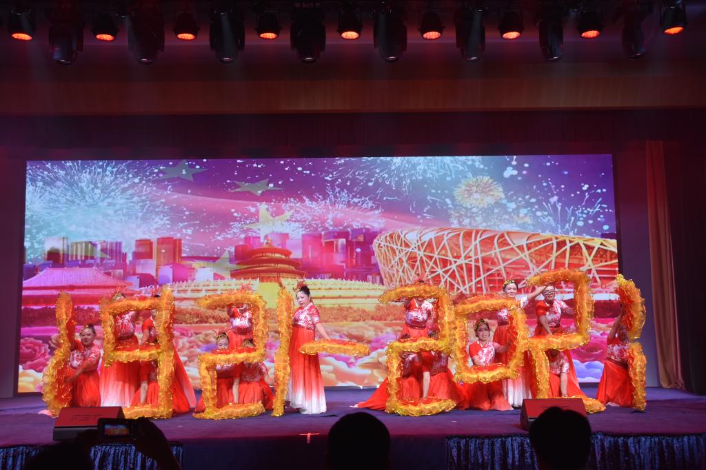 歌曲《万疆》用深情歌声唱出了心底对祖国的崇敬与澎湃,舞蹈《祝福祖国》歌颂祖国繁荣富强,祝福人民幸福安康,诗朗诵《平凡之路》表达了地大饮食人的坚强决心与顽强毅力,小合唱《祖国,慈祥的母亲》唱出了对祖国母亲的深情与忠诚,集体朗诵《鲜红的党旗永不褪色》催人奋进,表达了对党的热爱之情……在一个多小时的演出中,校工会、校团委、未来城校区管理办公室、艺术与传媒学院和后勤保障处职工们以舞蹈、合唱、诗朗诵、情景剧等表演形式为载体,歌颂党、歌颂祖国及建党以来取得的辉煌成就,展现了后勤保障处职工们赓续红色基因、坚定理想信念,服务好广大师生员工的坚强决心,也充分展示了后勤职工们意气风发、团结向上、阔步向前的良好形象。自编自演的节目,赢得了满堂喝彩。最后,刘杰副校长带领后勤保障处机关人员以及全体人员齐声高唱《没有共产党就没有新中国》,将晚会推向高潮并圆满结束。