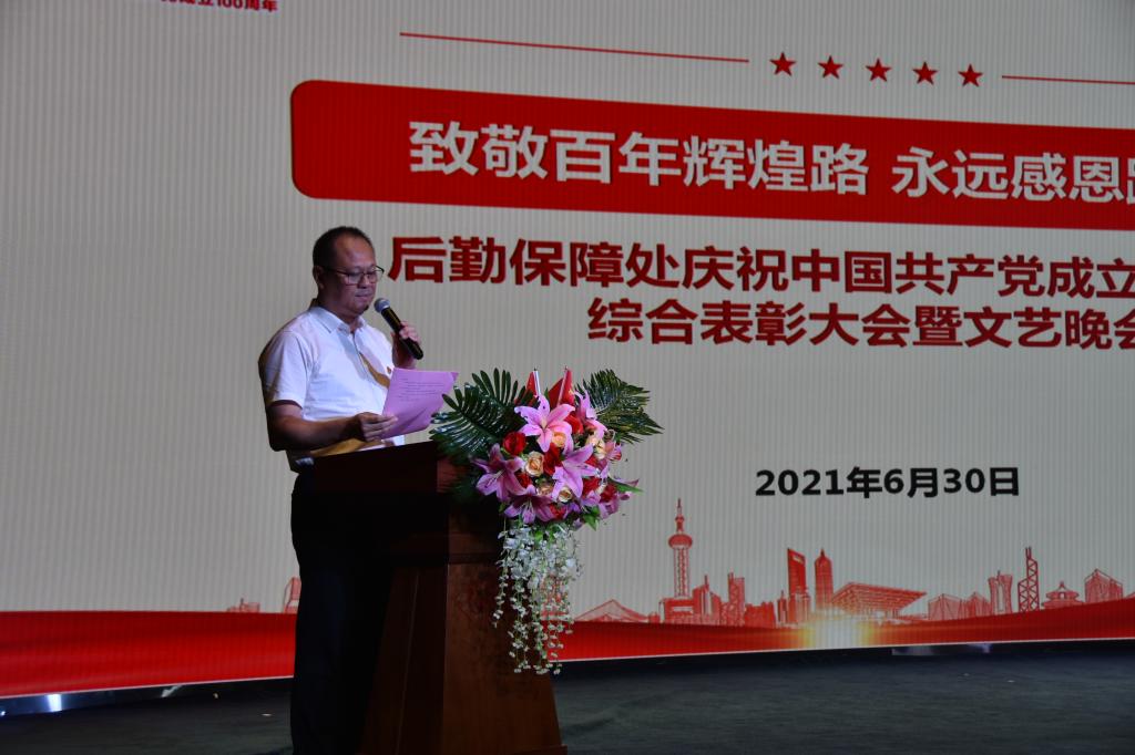 为热烈庆祝中国共产党成立100周年,动员和激励广大党员、干部群众统一意志、团结拼搏、扎实工作,为做好后勤保障服务努力奋斗。6月30日晚,后勤保障处举办了“致敬百年辉煌路 永远感恩跟党走”庆祝中国共产党成立100周年综合表彰大会暨文艺晚会,表彰2020-2021年度各类先进集体(团队)代表、个人,热情讴歌党的丰功伟绩,深情赞颂祖国辉煌成就。