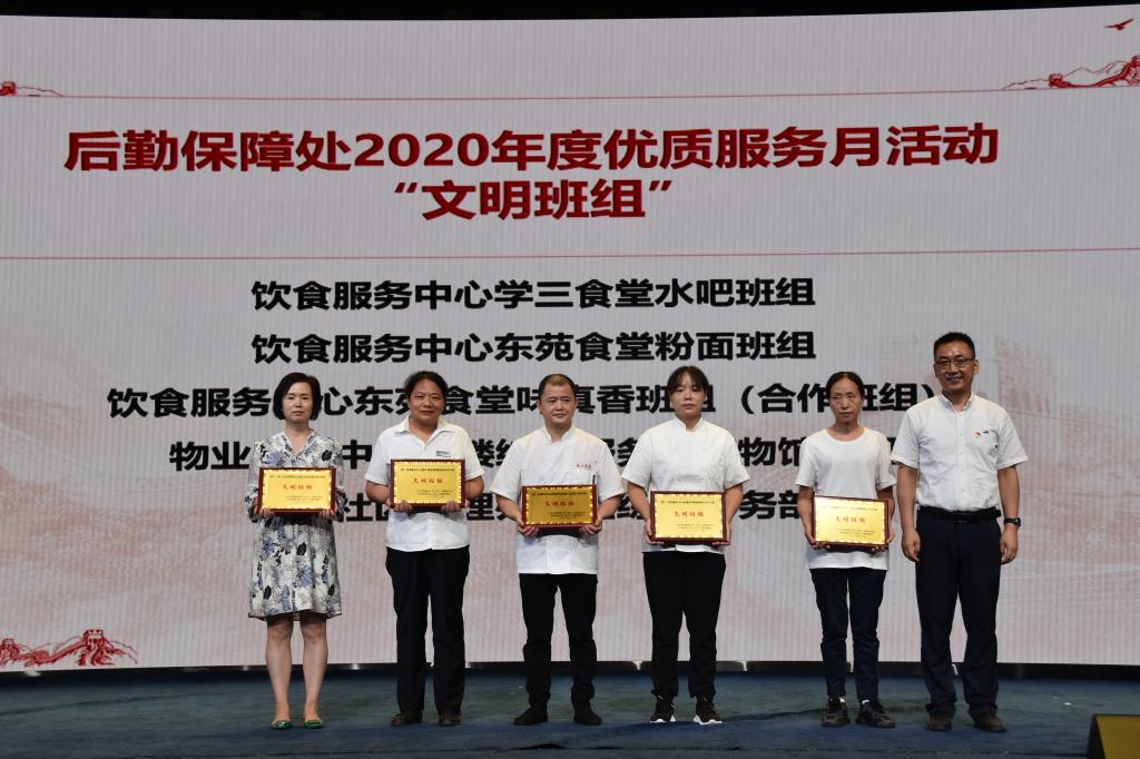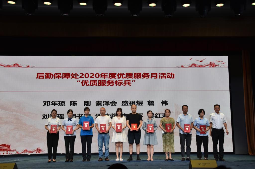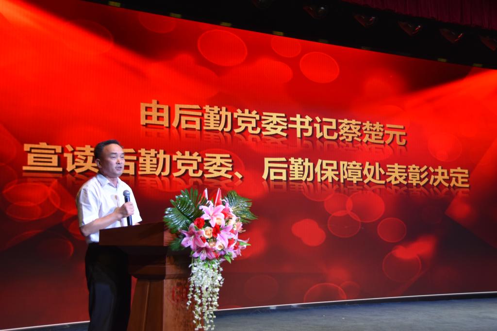 后勤党委书记蔡楚元宣读后勤党委、后勤保障处表彰决定。运输服务中心党支部获评“先进基层党组织”,袁礼昂等10名同志获评“优秀共产党员”,伍晋等5名同志获评“优秀党务工作者”,饮食服务中心学三食堂水吧班组等5个班组获评“文明班组”,邓年琼等10人获评“优质服务标兵”,饮食服务中心维修部等9个岗位获评“安全生产示范岗”,物业服务中心、运输服务中心获评“安全生产示范单位”,物业服务中心、饮食服务中心和学生住宿服务中心获评“优秀中心班子”,综合办公室、房产管理科获评“优秀科室”。
