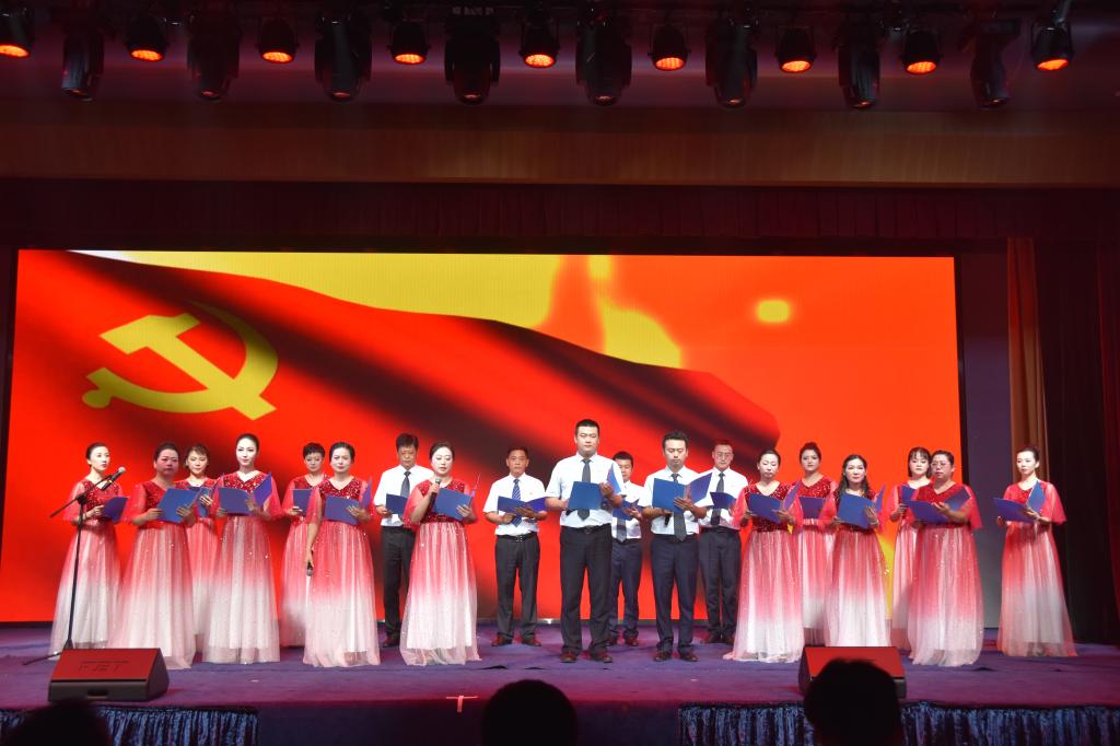 大会在庄严的国歌声中开幕,新发展党员入党宣誓、全体党员重温入党誓词,学校优秀共产党员周志锋领誓。