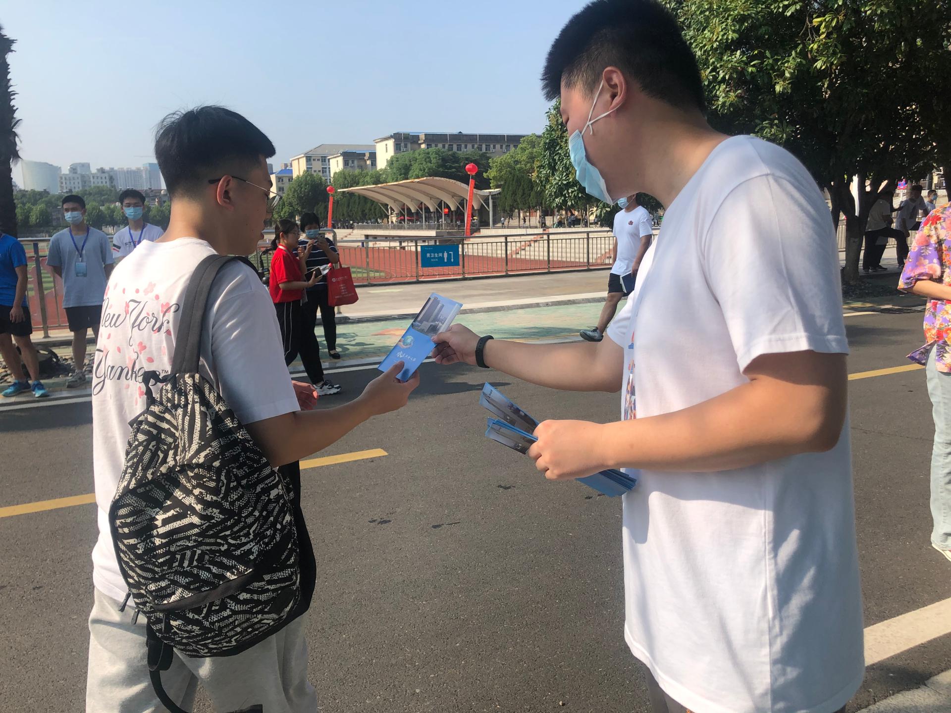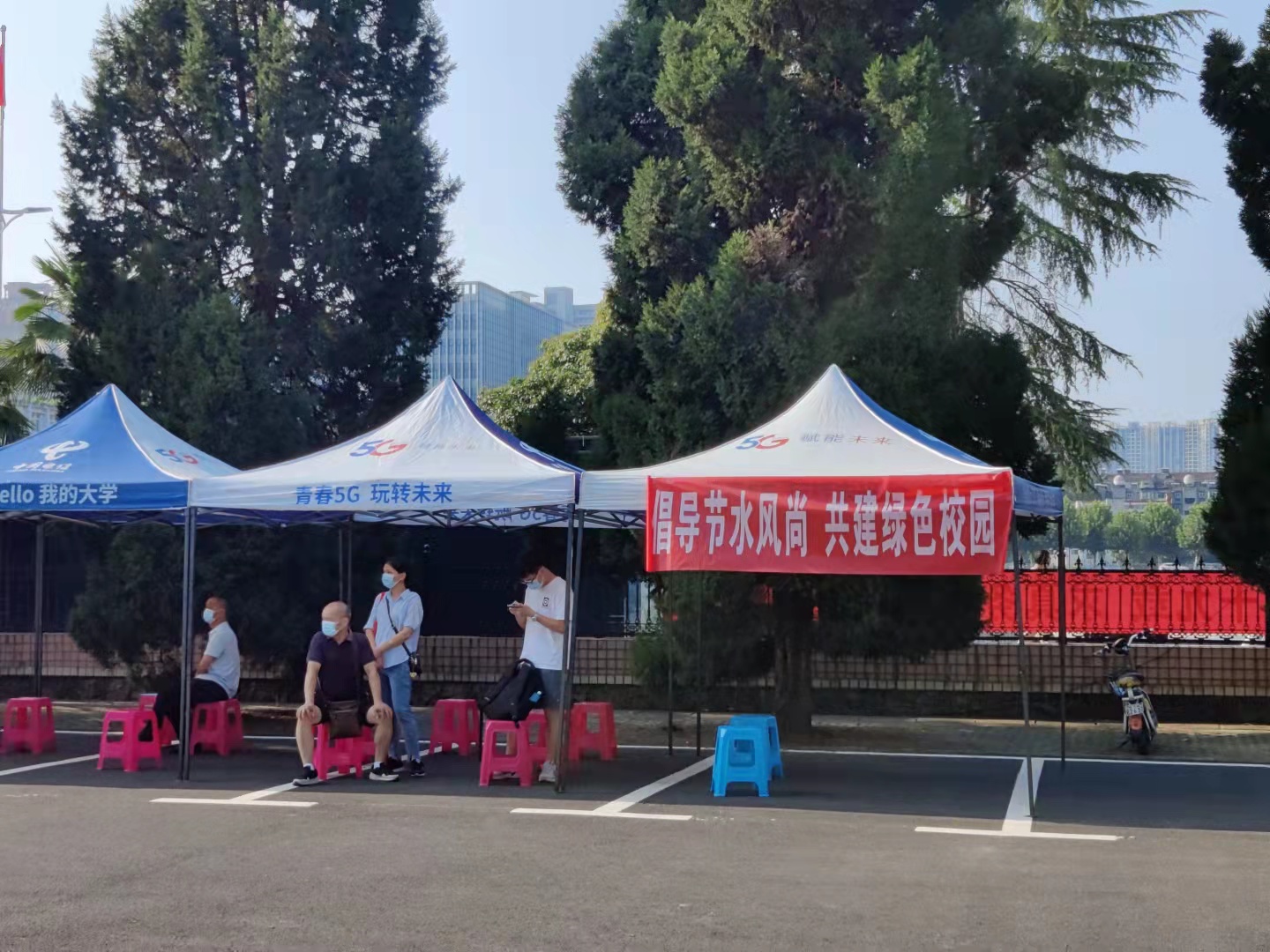 水电与节能管理中心节能宣传员身穿节水标识衣服,以派发节水主题宣传册,悬挂横幅、展板为主要宣传模式,向新生介绍节能节水理念、传播“落实节能减排、构建绿色校园”的育人理念,在校园内营造了良好的节能氛围。