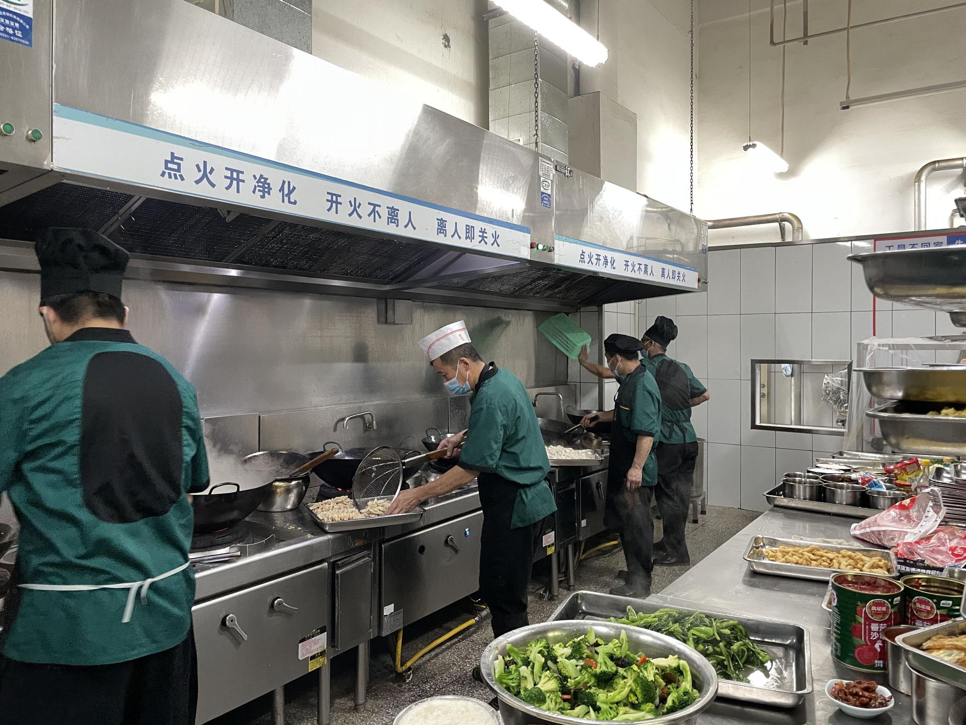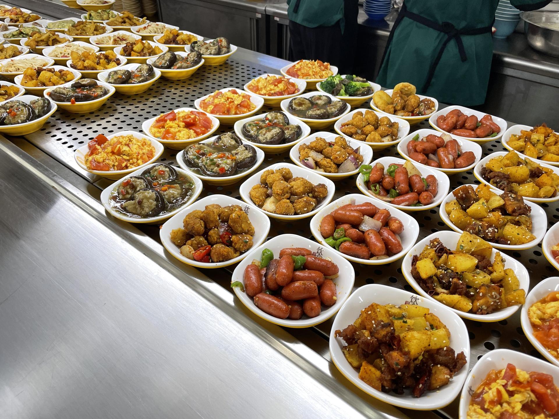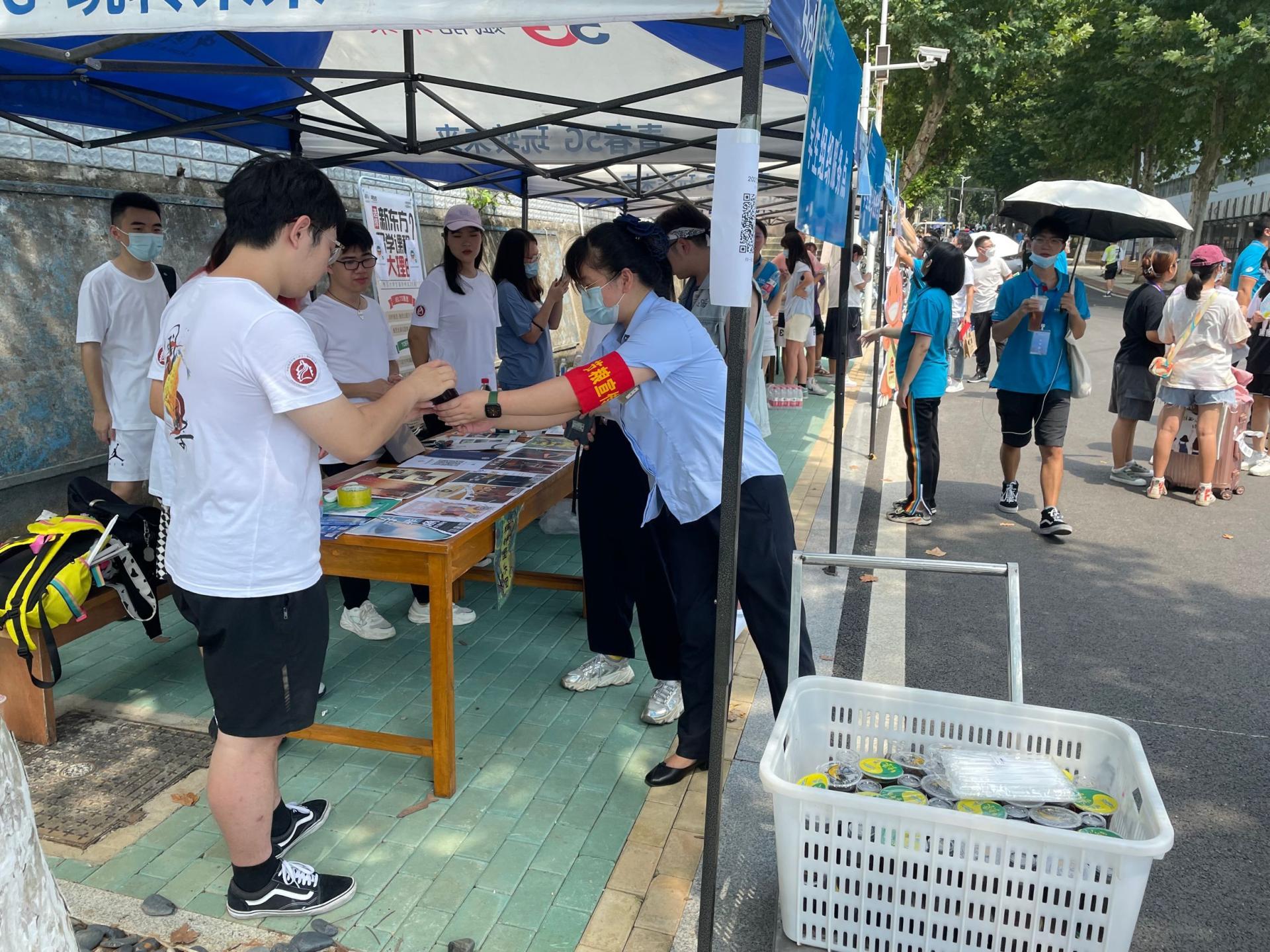 自8月29日起,各食堂全面开展消杀清洁、对卫生死角及安全隐患进行清扫整顿,打造优质的饮食环境。为保证新生随时吃上热乎饭菜,传递暖胃的关怀与体贴,各食堂加班加点备制了鱼圆、肉圆、鱼肉糕、卤肉等各类工艺较为复杂的菜品,迎新当天食堂员工早上5点到岗开始备餐,学三食堂和学二食堂全天候餐饮无间断供应,延长食堂营业时间到24点。为给迎新点工作人员解暑降温,运送了空调扇及40桶降温冰块,同时为师生和送新家长提供免费冰镇酸梅汤600余杯。暖心的服务,得到了大家的高度赞扬。
