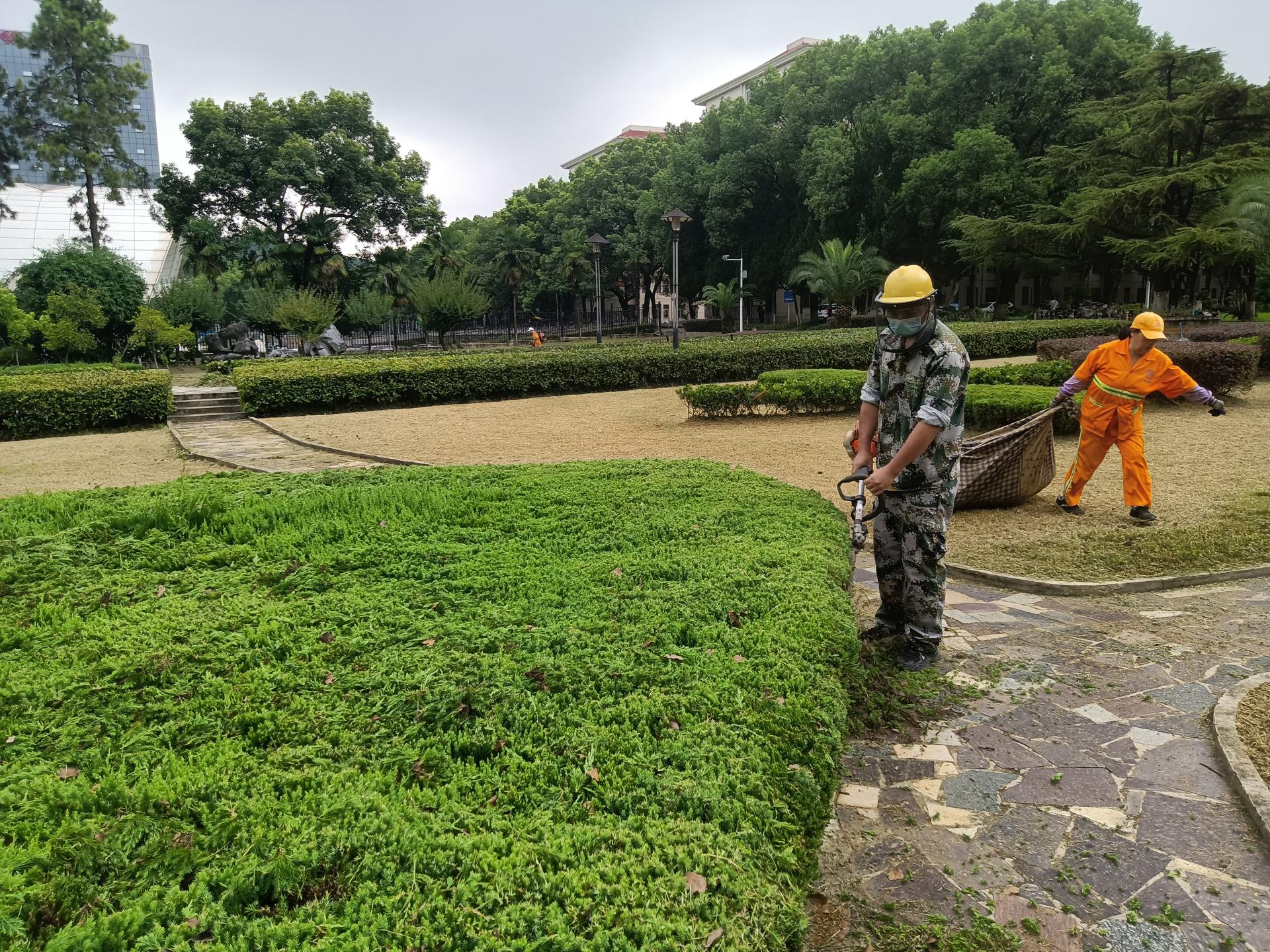 校园风貌是校园文化的展现窗口,为了给新生和家长留下美好的地大校园初印象,物业服务中心坚持常态化疫情防控措施,提前对校园内重点区域卫生死角进行彻底清理,对校园内各景观、草坪、绿植进行修剪,精心美化校园环境,用绿植花草点缀大门,用54条横幅烘托热烈温馨的迎新氛围。在各迎新点、弘毅堂家长休息区增设生活垃圾专用垃圾桶与废弃防护用品专用垃圾桶,保洁员全天候作业,创造了整洁、温馨、优美的校园环境。