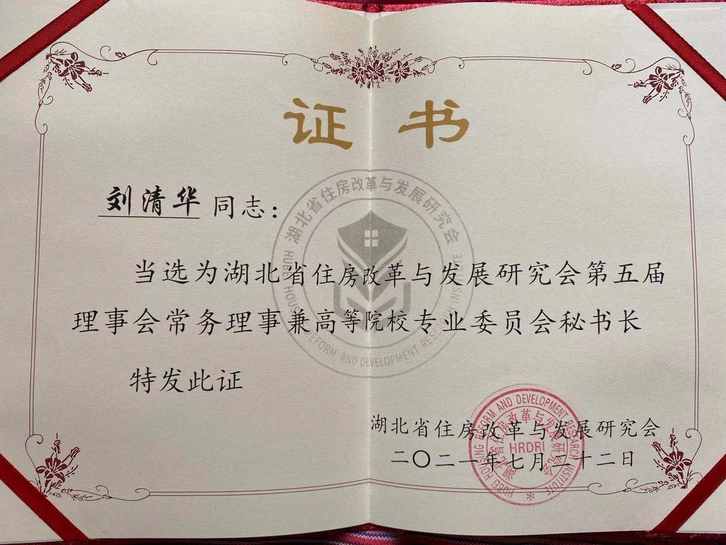 近日,在湖北省住房改革与发展研究会第五届会员大会上,我校后勤保障部被选为湖北省住房改革与发展研究会第五届理事会常务理事单位,副部长刘清华同志被选为湖北省住房改革与发展研究会第五届理事会常务理事兼高等院校专业委员会秘书长。