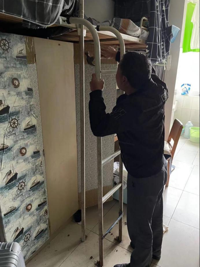 针对近日零散病例出现,学生住宿服务中心高度重视,各工作岗位轮班值守,严格进出登记,坚持巡视巡查,扎实做好常态化疫情防控工作,坚持公共区域卫生消杀;自北区4栋作为临时隔离点以来,学生住宿服务中心精心做好隔离学生的服务管理工作,认真听取学生合理诉求,在隔离观察期内持续做好为学生送餐、配送物资、清运生活垃圾、消杀公共区域等工作;南望山校区作为老校区,部分校舍存在漏水发霉现象,中心组织员工走访宿舍,分类统计学生宿舍漏水发霉现象,统一部署保洁人员将轻微的发霉点擦拭消毒处理;维修人员利用假期时间对学生公寓垃圾车、门、床、公共区域墙面进行修补,在学生住宿服务中心的主动服务和果断出击下,学生公寓的整体住宿环境有了较大的改善。