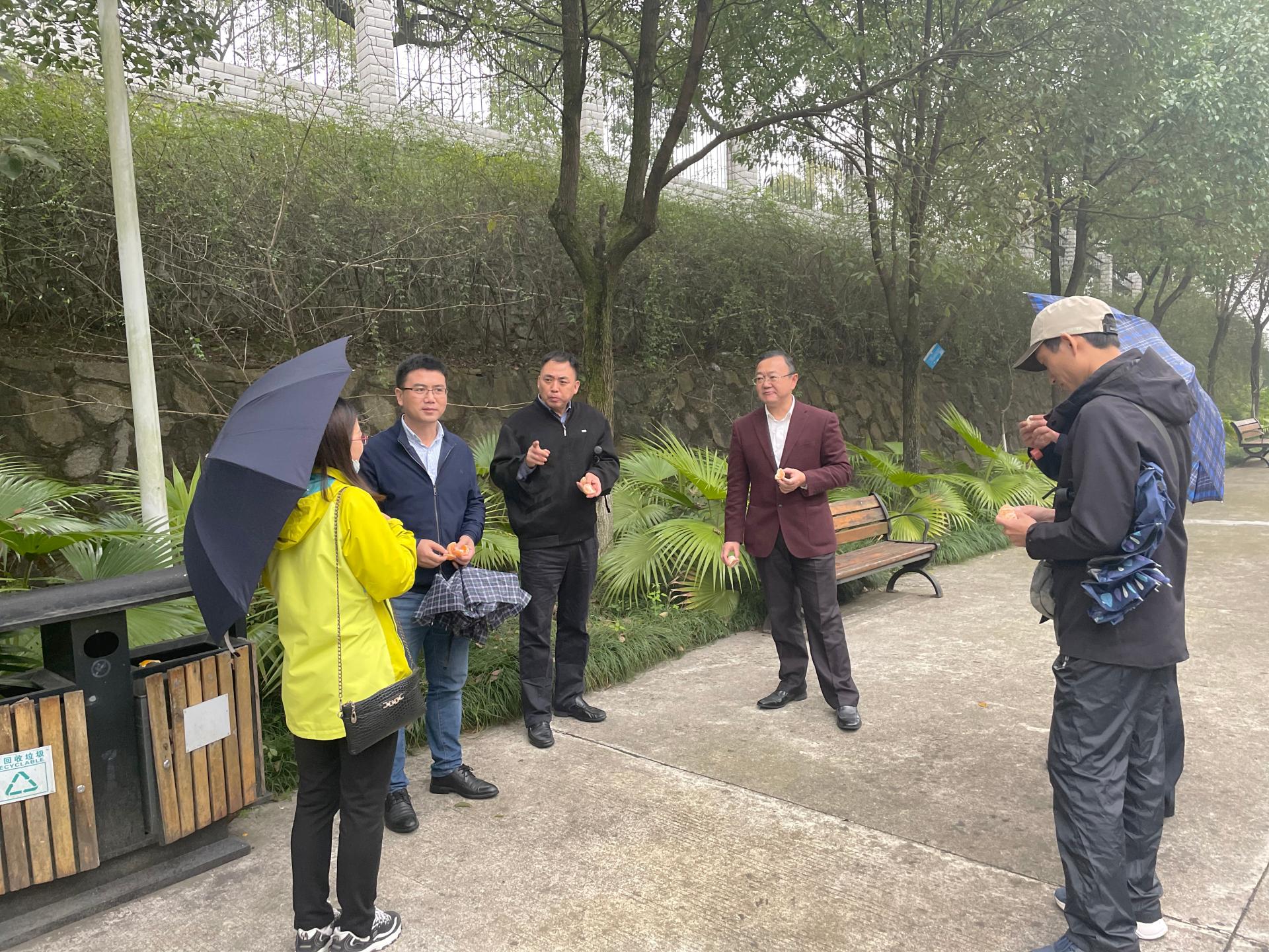 白育庭首先来到综合楼多媒体教室看望慰问正在基地开展野外实习的湖北科技学院师生,同学们对基地宜学的环境氛围以及周到的后勤服务给予了充分的肯定。随后,大家参观了基地食堂、化石园、试验场等地,并品尝了基地种植的柑橘。考察结束后,白育庭一行对基地的管理模式、后勤保障、硬件设施、教学环境等给予高度评价。他表示,要以此次参观活动为契机,进一步巩固双方交流合作,携手共促发展。