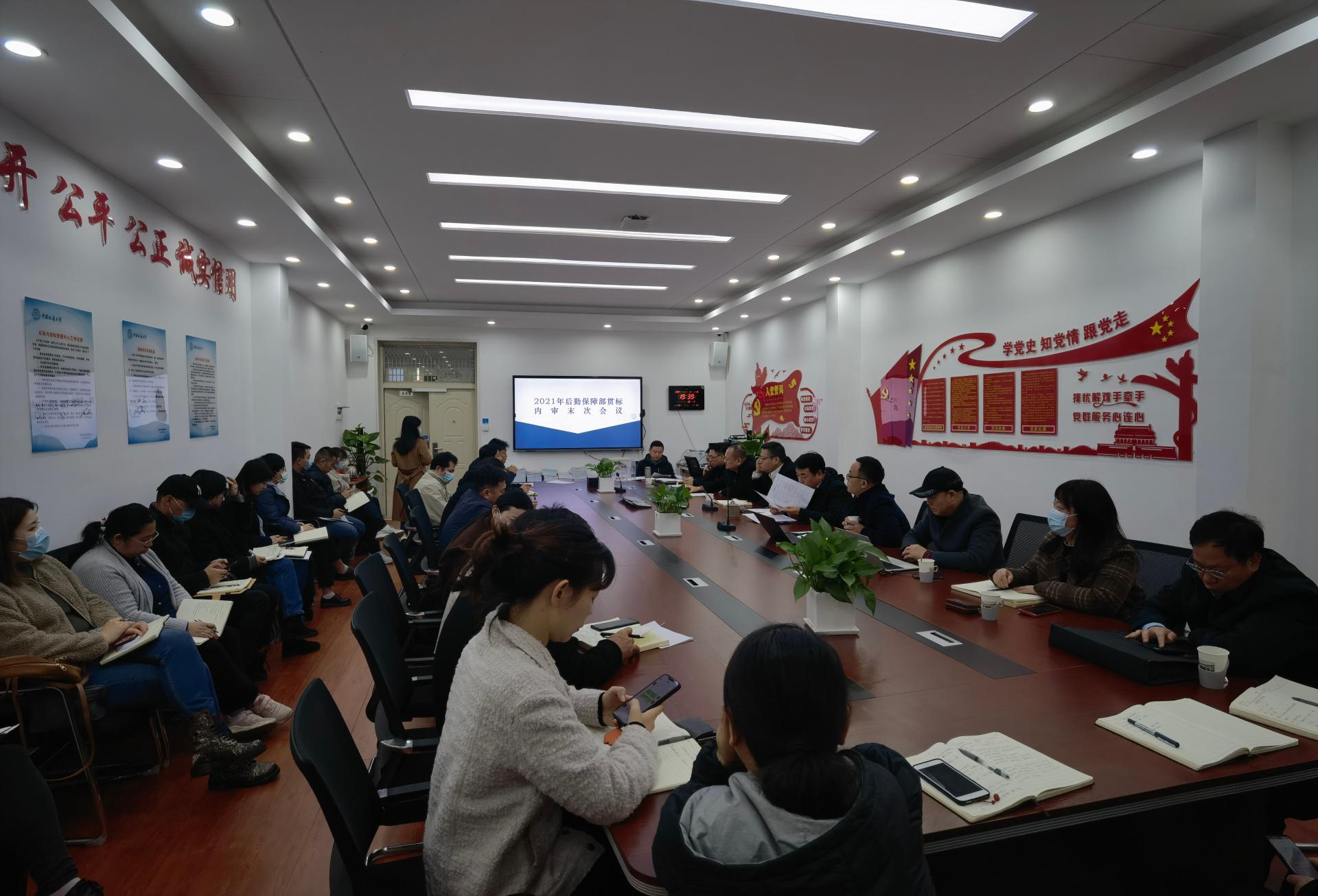 11月8日下午,后勤保障部在后勤106会议室开展2021年贯标内审末次会议。后勤保障部全体部级干部、各单位负责人、各中心贯标分管领导、内审审核组成员参加了此次会议。会议由后勤保障部副部长兼贯标管理者代表刘清华主持。