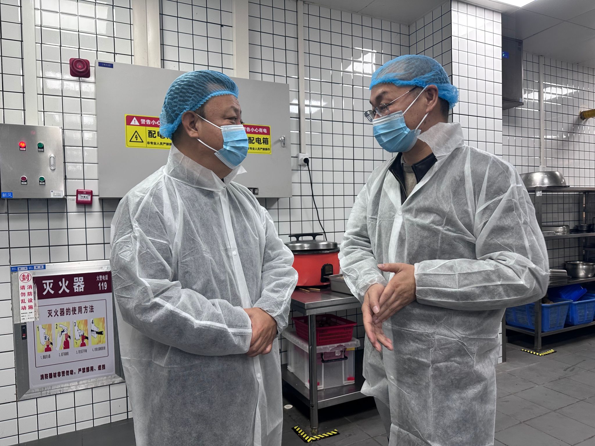 会后,北京市教委调研组一行实地走访参观北区食堂、东区泵房等。