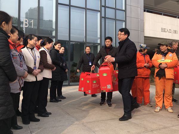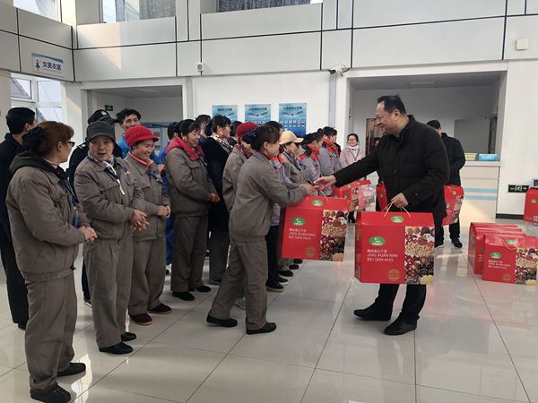 祥犬献瑞辞旧岁,金猪纳福迎新年。2019年2月1日农历腊月二十七,后勤保障处处长王文起、后勤党委书记蔡楚元、副处长刘清华、副处长林芸在综合办公室主任席志波的陪同下,深入一线,看望了正在工作的员工,向他们送上慰问品,表达对他们的关爱之情和新春祝福。