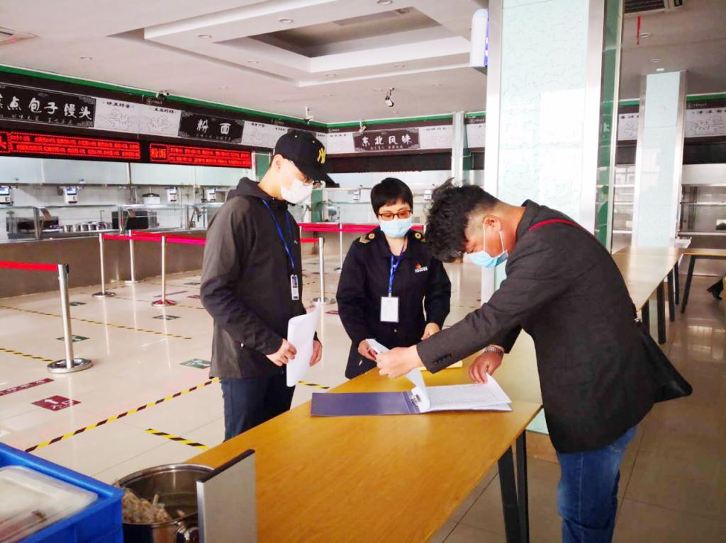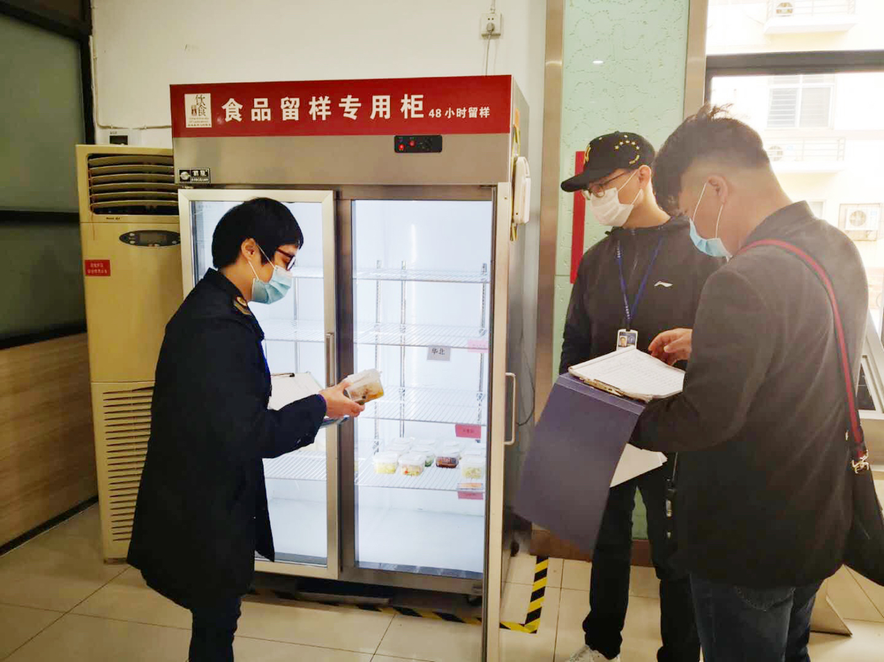 疫情发生之初,饮食服务中心迅即响应学校号召采取应急机制,针对饮食供应的重点环节采取了加强食堂环境和备餐工具用具消毒,对员工实行严格的晨检制度,专人负责原材料验收及储存,严格按照《餐饮服务食品安全操作规范》要求,强调原料生熟分开和烧熟烧透等一系列措施,以上措施也得到了市场监督局检查同志的认可。