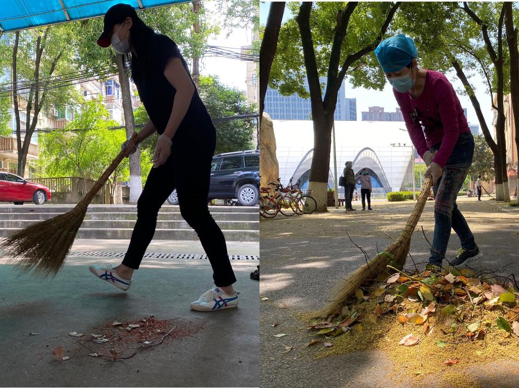 4月25日上午,中心支部书记黄晶晶、中心副主任姚红莲带领中心在岗职工在校东区集贸市场开展一次别开生面的复工、复市现场动员会。黄晶晶同志就复工工作进行部署后,大家拿着准备好的扫帚,撸起袖子热火朝天的将集贸市场1楼和2楼内外、周边打扫的焕然一新,沉寂了近三个月的集贸市场在中心同志们的齐心协力下变得干净敞亮。随后中心一行9人转战游泳馆旁商业门店前,因久未开业,门店前已经堆积了一层厚厚的落叶,大家二话不说开始行动,转瞬间门店前百余米长的道路清扫的干干净净。
