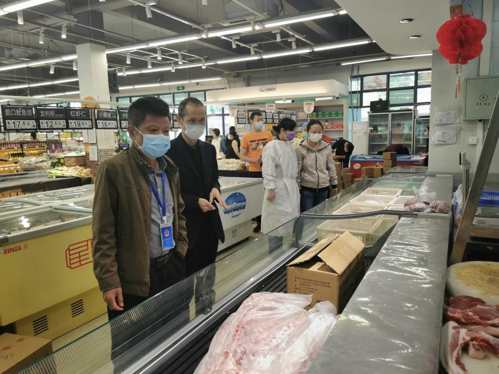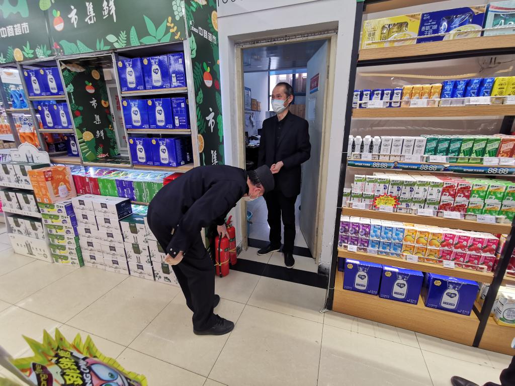 4月27日上午,由地大社区居委会相关负责人邀请鲁巷工商所、喻家山派出所对中商超市东区店进行开业前实地检查,后勤保障处副处长林芸、接待服务中心副主任徐莉、中心副主任杨扬及相关部门负责人陪同检查。工商所和喻家山派出所责人分别对从业人员核酸检测结果、门店消杀、通风设备、日常检查记录等相关方面进行了了解和核实,并对超市复市后的疫情防控工作给出指导性的建议。检查人员对超市东区门店前期做的准备给予肯定,并提醒中商负责人切实做好疫情防控和人流管控工作,避免到店客人扎堆购物情况的发生。