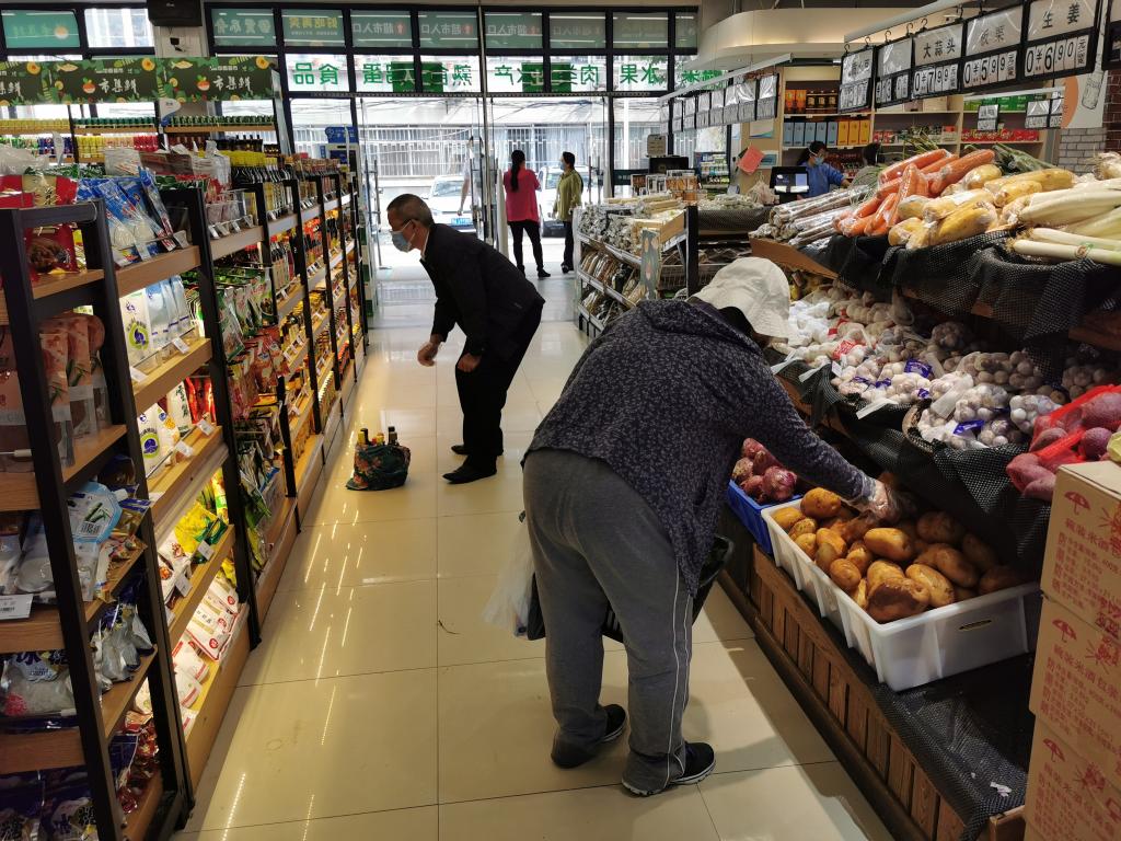 5月1日上午8:30,中心赶在超市营业前,对超市防疫准备工作、上岗人员的体温登记、卖场的消毒消杀、供应商品的质量、消防安全等情况进行检查。在检查中,随机抽查五花肉5份,精瘦肉2份,后腿肉2份,筒子骨1份,通排1份,其重量与价签标注的相符,均在保质期内,无质量问题。检查了水果、蔬菜、酸奶、零食、佐料、面包、日化用品等商品的生产日期,均在保质期内。