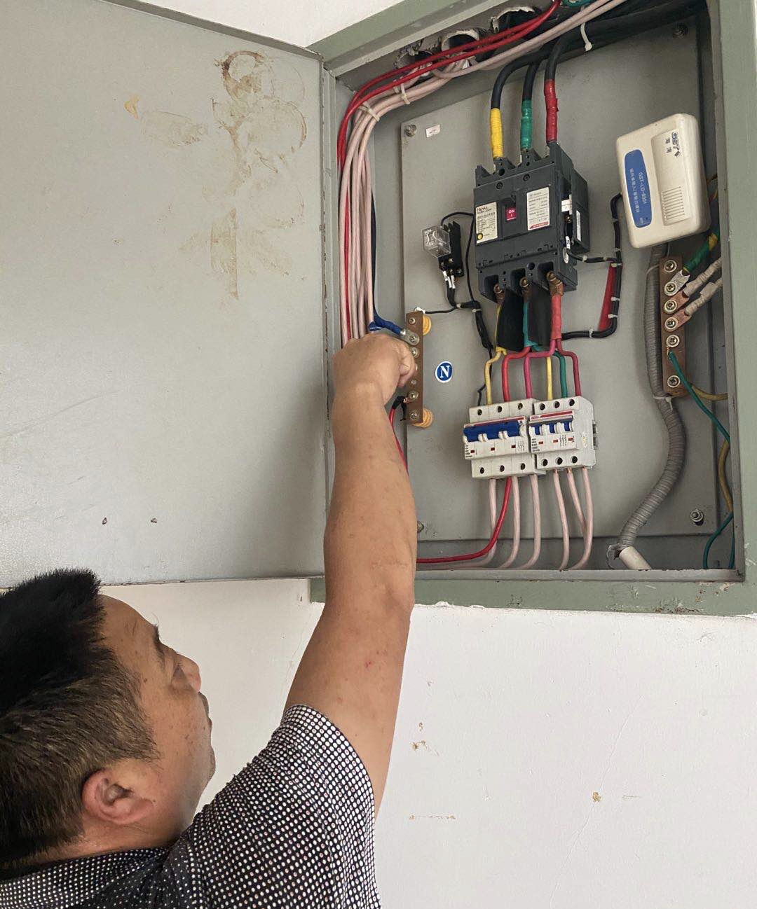 此次主要的检查工作有:配电室线路松动情况、配电箱运转情况、大型用电设备运行情况、排除漏电隐患、测试每栋楼的防雷接地装置,水电安全检查工作做到不留一处死角,不漏一处隐患。