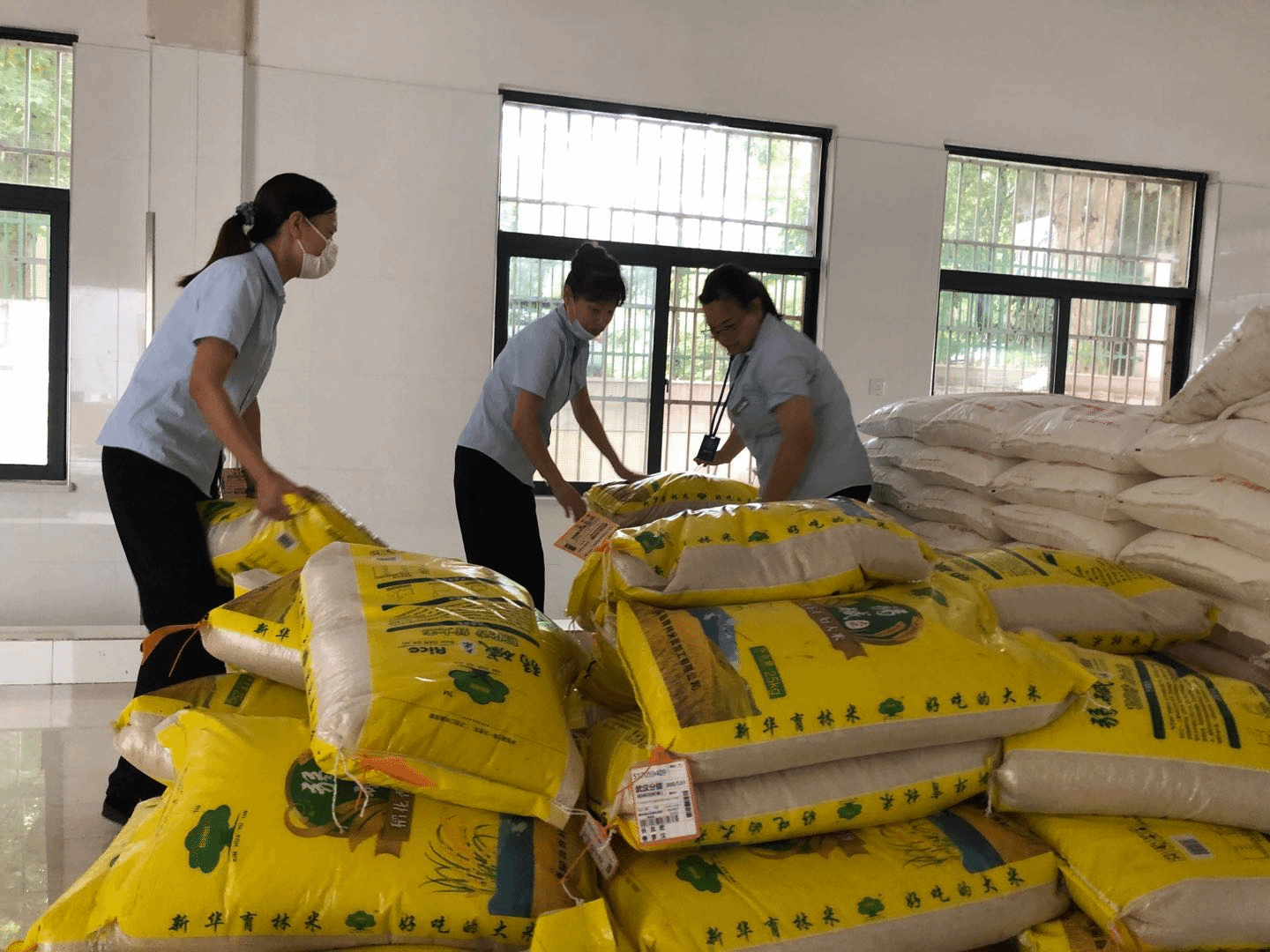 6月5日,饮食服务中心通过“贫困地区农副产品网络销售平台”,从吉林通榆县采购了1万斤东北大米,总计消费3万元。6月10日来自通榆县的大米运抵学校,采购员和食堂师傅们齐上阵,搬运、称重、堆码……大家齐心协力,将大米装卸到主食仓库。