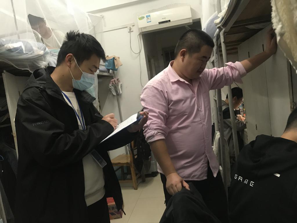 秋尽冬来,寒风料峭,凛冽的寒风依然阻挡不住走访组夜巡学生宿舍的工作热情。在本次走访中,走访组主要排查学生宿舍安全隐患及违章电器,维护宿舍安全秩序;检查学生宿舍卫生整理情况,实时记录作为评分重要参考依据;提醒学生注意宿舍公共卫生,勤洗手,勤消毒,做好疫情防控工作;询问学生宿舍内有无损坏报修的设施,引导学生正确有效报修,妥善处理住宿问题;采集学生对宿管工作人员的服务质量评价,推动学生对宿管工作的义务监督,打通双向互动育人通道等。走访期间,工作人员主动热情,现场气氛融洽和谐。