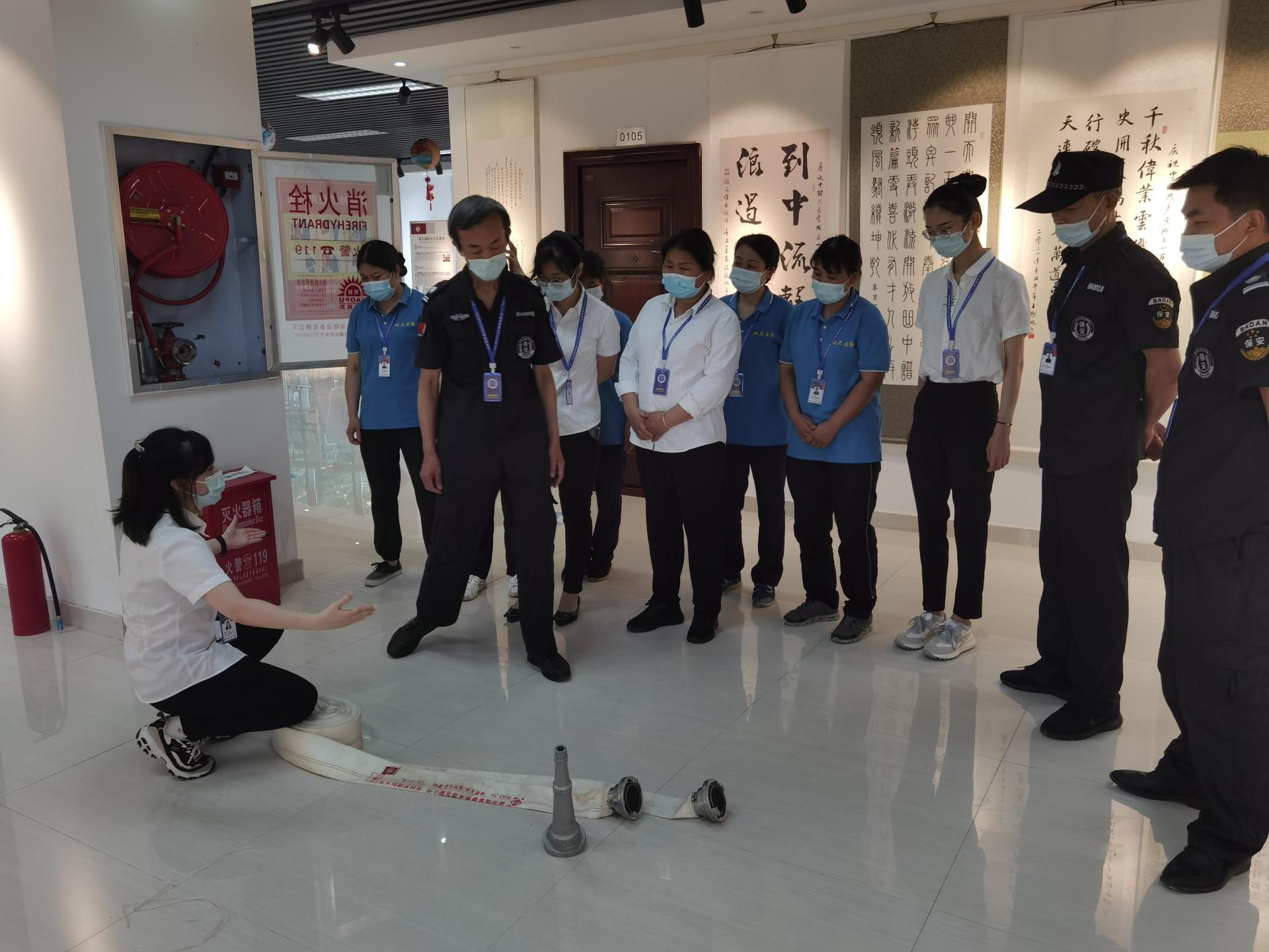 本次活动按东、西、北区划分,共设置三个会场。活动以理论知识培训与实地模拟演练相结合的方式,在三个会场同步开展。在理论知识培训环节,组织员工学习了消防器材使用方法、电梯困人处置流程、消防监控室火灾联动控制器基础操作、消防广播播报注意事项等内容。随后,各区以园区为单位,围绕理论学习的内容,进行了实地模拟演练。整个过程大家认真操作,默契配合,好学互学氛围浓厚。